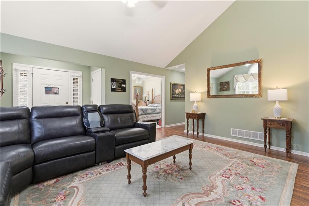 BEAUTIFULLY MAINTAINED AND MOVE IN READY RANCH HOME IN THE HIGHLY SOUGHT AFTER ST JAMES COURT, A DESIRABLE MAINTENANCE-PROVIDED COMMUNITY! This impeccably kept residence offers convenient one-level living with 2 bedrooms, 2 bathrooms, and a 2-car garage. The open floor plan features a spacious living room with vaulted ceilings, a cozy fireplace, and hardwood floors. Large windows flood the home with natural light and highlight views of the tree-lined lot, offering a peaceful setting with exceptional privacy. One of the standout features of this home is the fully finished sunroom, thoughtfully updated to create the perfect space for year-round enjoyment. Whether used as a morning coffee retreat, reading nook, office or hobby space, or additional entertaining area, this bright and inviting room adds both versatility and valuable living space. The vaulted owner’s suite offers a relaxing escape with a double vanity, separate shower and soaking tub, and a generous walk-in closet. Located in the award-winning Blue Valley School District, residents enjoy maintenance-free living with access to a neighborhood pool and scenic walking trails. Whether you’re looking to downsize, simplify, or enjoy carefree living, this home offers the perfect blend of comfort, lifestyle, and location. Schedule your private showing today—homes like this don’t last long!