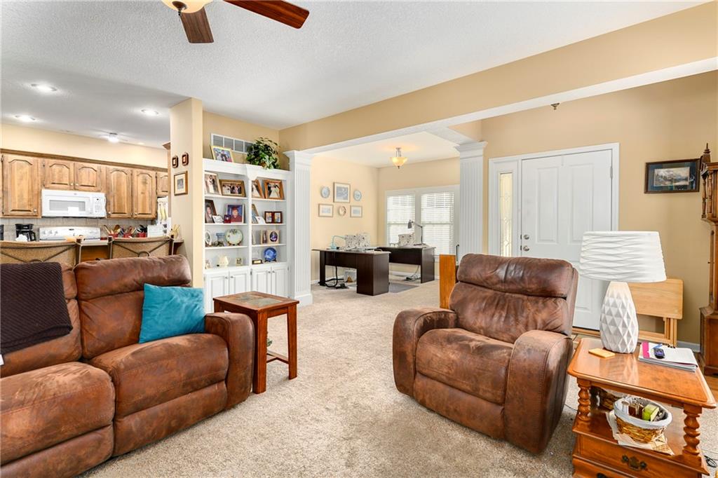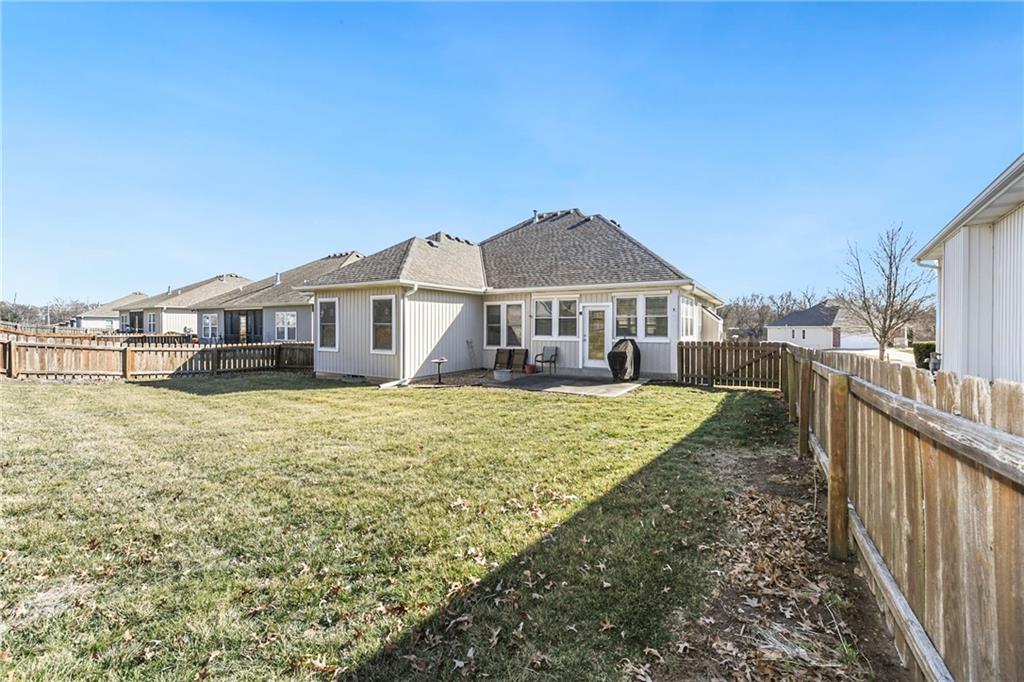 Look no further for your ideal maintenance-provided ranch home in a 55+ community. One owner has meticulously cared for this 2 bedroom, 2.5 bath ranch home in a great Lee's Summit location with shopping, library, and highway access close by. Step inside and enjoy all of the natural light from the many surrounding windows on the main level with everything you need - living room with a fireplace for all of the cozy home feels, garage entrance from the kitchen, with laundry, dining, eat-in kitchen with built-ins, and a sunroom that walks out to the spacious fenced yard. Downstairs you will find a finished bonus room space, with an added bathroom and ample unfinished storage space. All you need to do is move in, make it your own and enjoy maintenance-free living! All of the major items are taken care of! New roof, HVAC, microwave and new carpet downstairs. Fridge and W/D will stay with the home. Lawncare, snow removal, and trash pick up are provided through the HOA. Schedule today to see this adorable and well-cared for home!