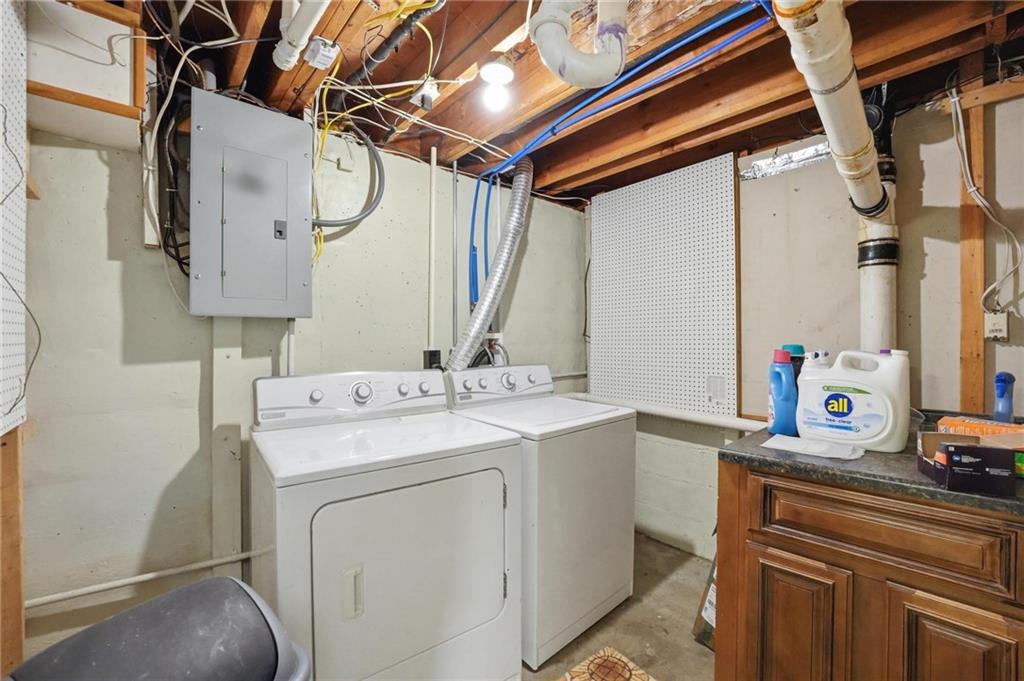 Warm and welcoming 3-bedroom ranch with 2 full baths, spacious 2-car garage. A convenient door from garage opens to a large, level, fenced backyard, featuring a partially covered patio area, bricked around the edges and perfect for quiet mornings as the sun rises, evening gatherings without the heat of the sun, or simply relaxing outdoors. A separate back door leads into the home. Inside, the original 1956 hardwood floors add timeless character and mid-century charm throughout. You'll find a comfortable, spacious living room, a dedicated dining area and an updated kitchen with brand new appliances and painted cabinets The washer and dryer stay, adding to your convenience. The three bedrooms, one a primary with full bath, complete the main level in this charming home. The lower level offers over 500 additional finished square feet of living space, including a welcoming family room and a non-conforming fourth bedroom, perfect for guests, a home office or a hobby space. All upstairs windows have been replaced recently, adding natural light and efficiency. Owner also added new railing to the front entrance.