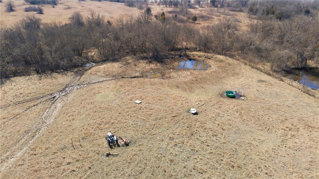 Spacious 60 acres m/l that lives larger than its size. Roughly two thirds of the land offers exceptional privacy, making it an ideal retreat. Features a starter cabin with a deck, ready for your finishing touches. Includes a pond, wet weather creek, and abundant wildlife such as deer, turkey, and a resident covey of quail. Set up for cattle with good grass and natural water sources. Less than an hour from South Kansas City, this property is perfect for rural living, hunting, or a working cattle operation.