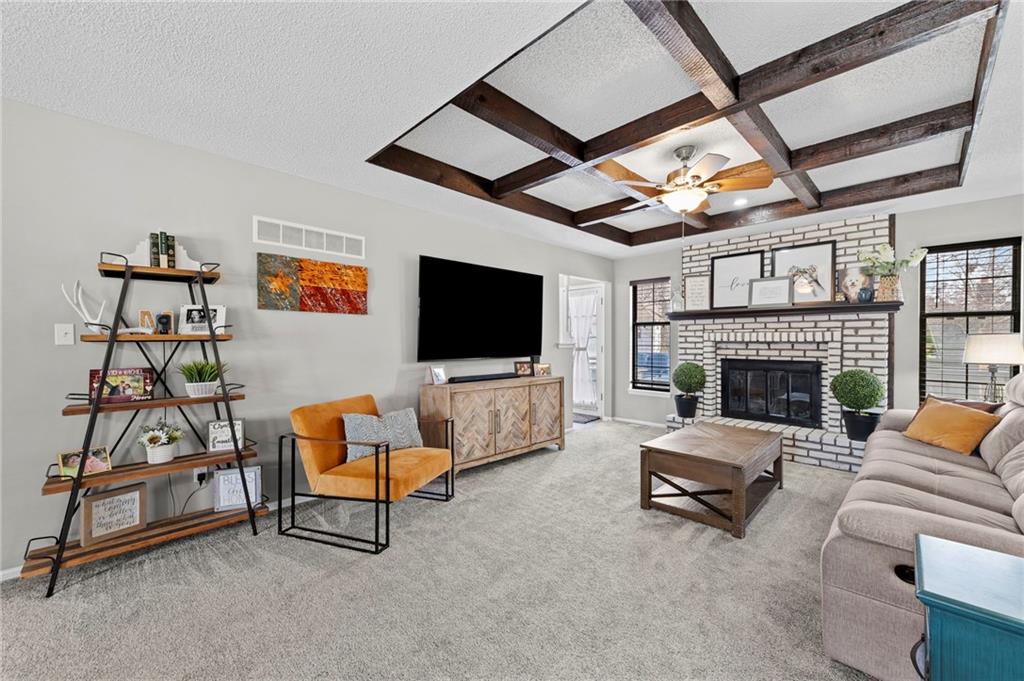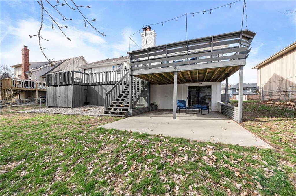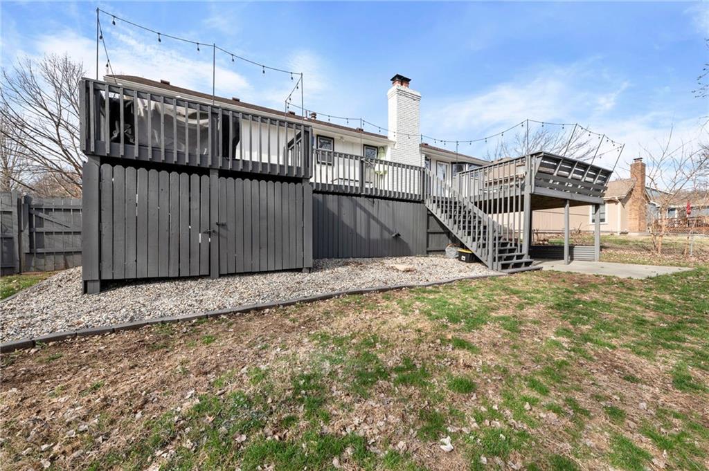 One of the cutest homes in Vista Del Verde with so many great features! This home is updated in coveted black and white new exterior paint with curb appeal that pops! Come inside to a welcoming front nook to read a book or set up as the dogs favorite sun bathing spot. Enjoy the open dining/living room with a fireplace that sets the room drawing your eye to a contrasting ceiling. The kitchen is ready to host all of your cooking with granite countertops and stainless steel applicances that overlooks a breakfast nook with a bay window displaying a newly painted entertainment deck with storage below. There are also several interior storage areas including a converted bedroom closet, that can be converted back to a bedroom. Newer plush carpet throughout, luxury vinyl plank floors, large hall bath, downstairs rec room with wet-bar and walk-out, third full downstairs bathroom with separate laundry area, large deep two car garage, and covered back patio area are just a taste of what this home has to offer. Lastly the amazing location with great shopping, Lee's Summit schools, parks and highway access nearby. Schedule your showing today before it is gone!