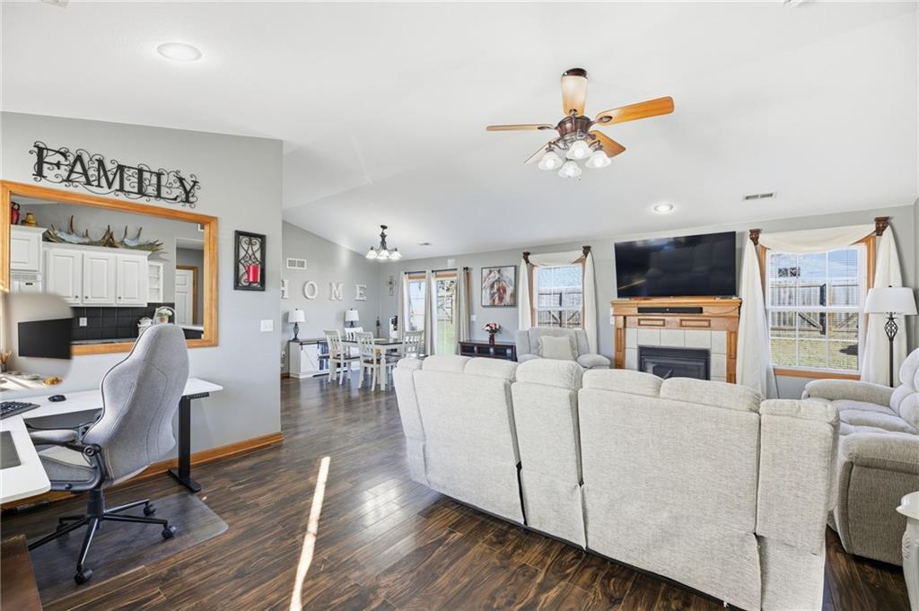 Move-in ready ranch offering thoughtful recent updates and a spacious yard. This 3-bedroom, 2-bath home features vaulted living-room ceilings, new flooring throughout, freshly painted cabinets and sealed countertops, new appliances and sink, and modern light fixtures and door hardware. Systems are renewed — newer roof, gutters, HVAC, water heater and upgraded insulation — plus hardwired smoke alarms for added safety. The home includes a convenient laundry room, built-in garage shelving with a mini-split system for climate controlled and a large fenced in backyard.