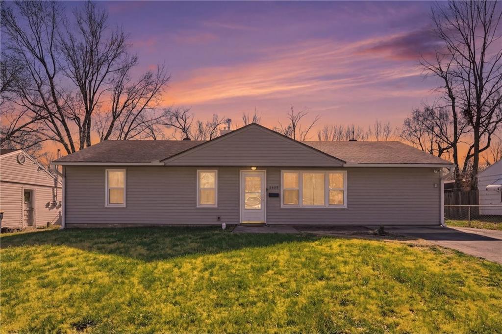Fully updated ranch offering true main level living just minutes from Longview Lake. This four bedroom, one bathroom home features spacious bedrooms and an oversized bathroom with a comfortable and functional layout. The updated kitchen includes a walk in pantry and flows conveniently to the main level laundry room located just off the kitchen. Updates throughout the home include fresh paint, updated finishes, and thoughtful design from floor to ceiling creating a bright and inviting living space. Outside you will find a double driveway with a double gate leading to the backyard and an oversized detached garage featuring a heated shop complete with shelving, work benches, and ample workspace. The large fenced backyard offers additional outdoor living space with a gazebo and greenhouse already in place. A rare opportunity to own a move in ready ranch home with a workshop, outdoor amenities, and convenient access to Longview Lake, parks, and nearby conveniences.