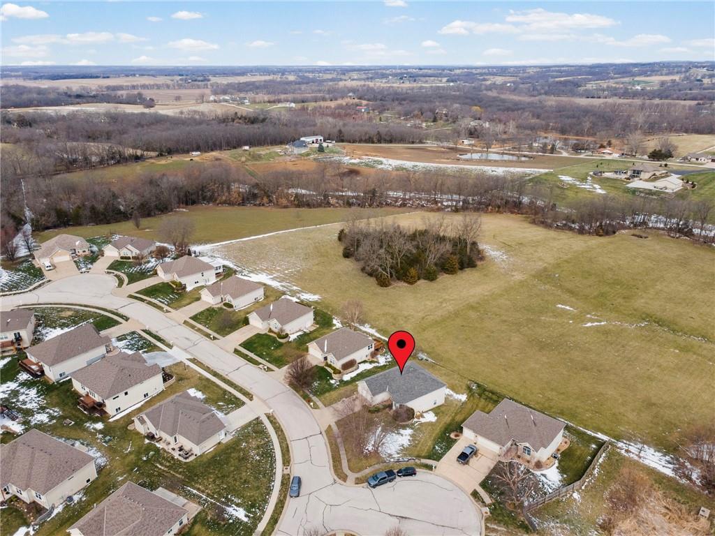 From hwy 169 and Second Creek Road in Smithville, MO, travel west to Prairie Rose Cir. Turn right on Prairie Rose Cir to the property.