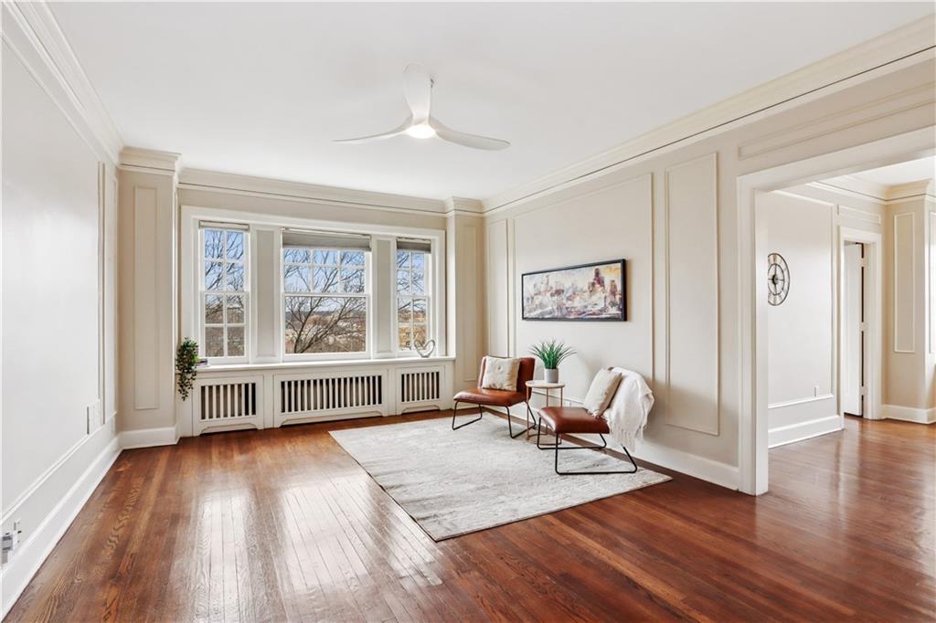 Fall in love with this beautifully updated 2-bedroom, 1-bath corner unit in the iconic Sophian Plaza. Flooded with natural light, this unit features rich hardwood floors, crown molding, and oversized windows with views in multiple directions. The updated kitchen is both stylish and functional, offering granite countertops, stainless appliances, a gas range, pantry, and spice cabinetry. Kitchen layout is open to the main living space, making it ideal for hosting or simply enjoying everyday life. The spacious primary bedroom is a wonderful retreat! Thoughtful touches like in-unit laundry and custom window treatments for convenience. Unlike many Plaza condos, the bedrooms are large enough to easily accommodate wardrobe pieces or armoires if someone wants additional closet space. Private basement storage included — perfect for seasonal items and extra belongings. Sophian residents enjoy a newly upgraded patio, private storage, secure exterior parking, and dues that include gas and water. Set in one of Kansas City’s most architecturally celebrated buildings, this location places you moments from the Country Club Plaza, Nelson-Atkins Museum of Art, parks, shopping, dining, and entertainment. If owning a piece of iconic architecture is on your bingo card for 2026, this one is worth it!