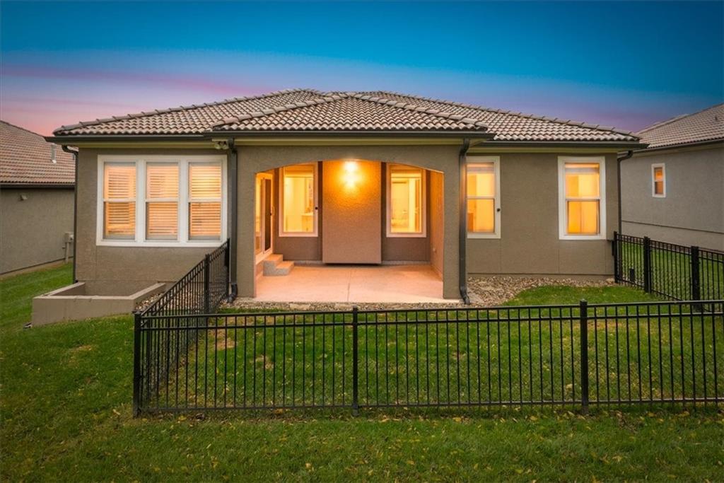 Imagine coming home to pure elegance & zero hassle – this is the incredible value you've been waiting for in one of Lee's Summit's most sought-after villa communities! A striking stucco exterior topped with a durable tile roof delivers timeless curb appeal. Step through the grand entry with its show-stopping intricate ceiling details and sleek modern light fixture – the same sophisticated style flows seamlessly into the main-level primary suite, bathed in warm ambient tray lighting for that perfect retreat vibe. The heart of the home, a jaw-dropping Kitchen that's built for entertaining & everyday luxury: rich stained cabinetry on the oversized island, a stunning marble-inspired herringbone backsplash, premium upgraded appliances & a massive walk-in pantry that makes meal prep a breeze. The primary bath is your personal oasis with a luxurious zero-entry shower (frameless glass door for that open, airy feel), deep soaking tub & gorgeous granite countertops. Plantation shutters and stylish shades that give you effortless control over privacy and sunshine. Step outside to your covered front porch or expansive rear patio, both featuring sleek, epoxy-coated floors built to last. The oversized garage with its own epoxy-coated floor for that showroom shine. Outside, the automatic sprinkler system keeps the lawn lush & green with zero effort on your part. The partially finished basement is a bonus bonanza: a second living area, convenient half bath, egress window ready for a potential third bedroom or guest suite, plus tons of storage. All this low-maintenance bliss comes with a super-affordable $143/month fee covering lawn care and snow removal. The $1,100 annual HOA unlocks resort-style perks: a pool, clubhouse, pickleball court, walking trails & trash. Prime location puts you minutes from shopping, dining, and the charming downtown Lee's Summit. Buyer & Buyer's Agent to verify all info including square footage, zoning, taxes & room sizes during the Inspection Period.