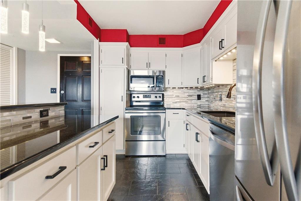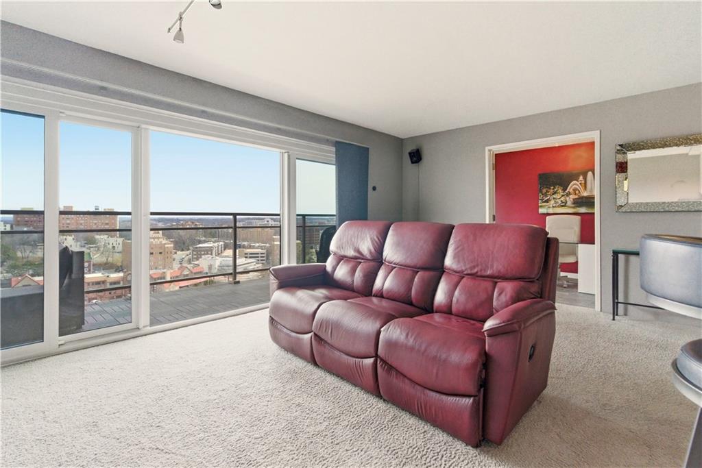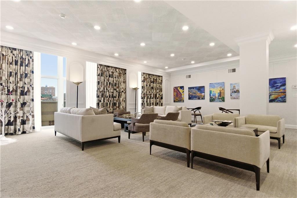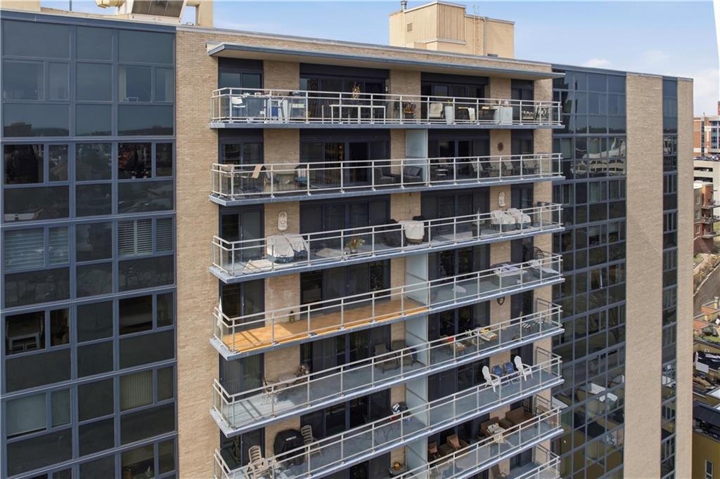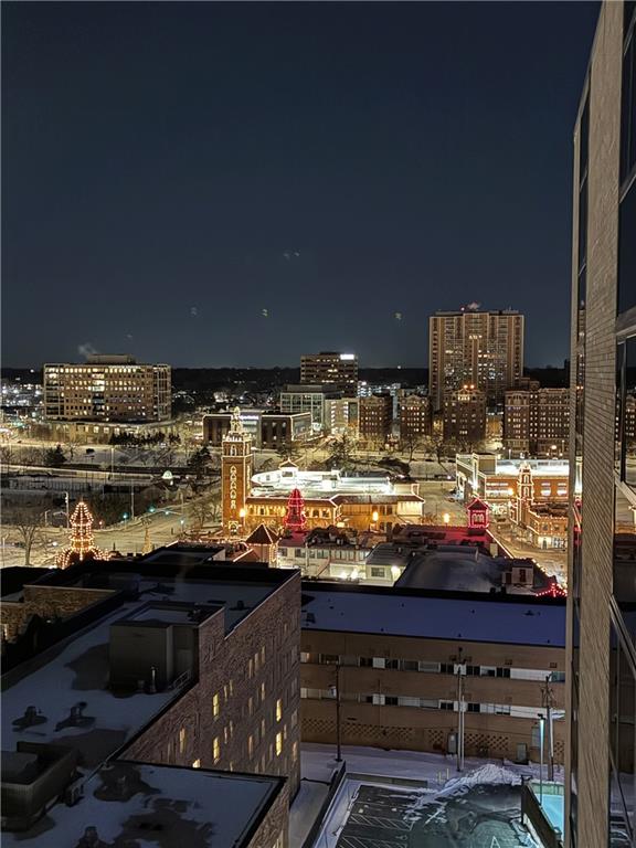 Perched on the 11th floor, this seldom offered unit with a 30' balcony has unparalleled views of Mill Creek Park and the Plaza skyline. Five-minute walk to hop on the streetcar to Downtown KC or Power and Light!! Completely renovated and turnkey, this is your opportunity to enjoy maintenance free living in a fabulous Plaza location and includes a coveted covered garage space for your vehicle. This darling unit won't last with all the upgrades the Owners have put in including Hunter Douglas automatic shades, remodeled kitchen with granite and bar, office with access to balcony, updated bathroom and more! This building has 24 hour front door security and amenities which include exercise room, hobby room, mail room, parking and multiple party spaces. Water, trash, heating and cooling are included in HOA fee. Storage space comes with unit. Unbeatable location with walking distance to everything you might possibly need! Don't wait to check this one out!