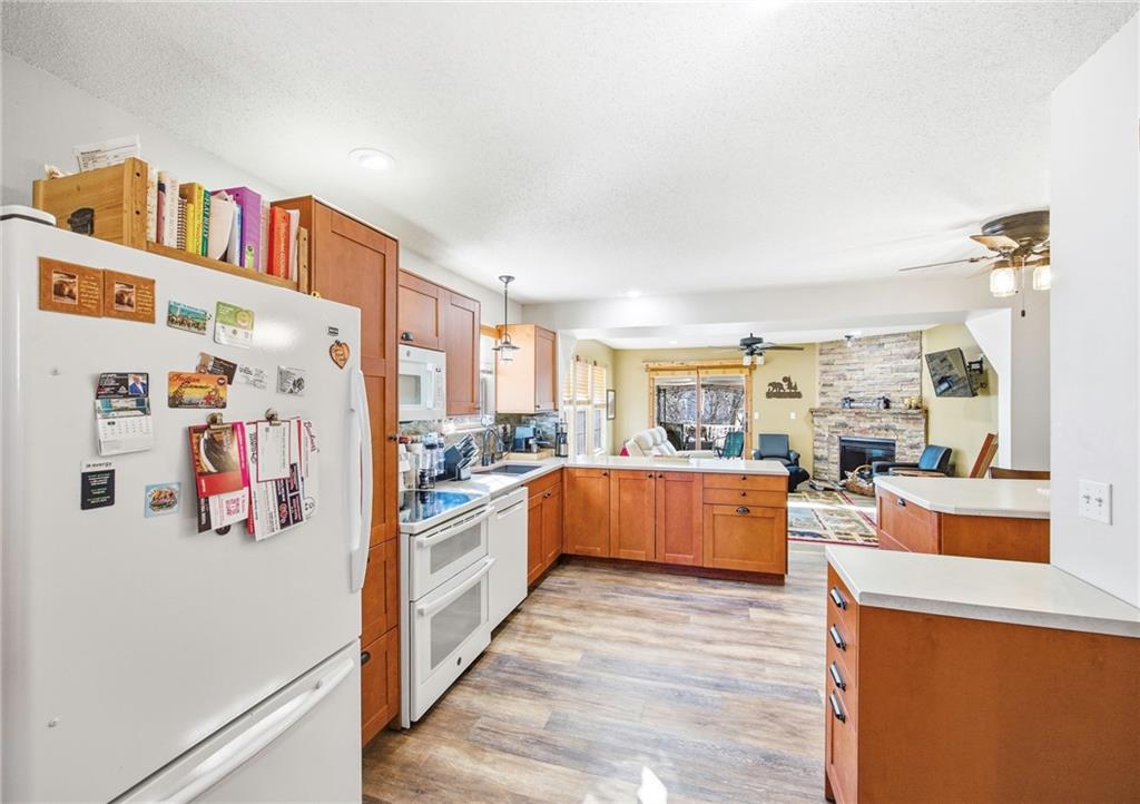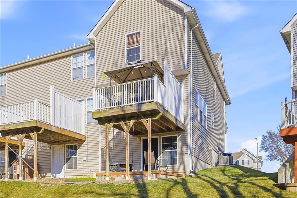 Welcome to 9754 N Lewis Ave, Kansas City, MO 64157 — a beautifully updated townhouse located in the highly sought-after Benson Place subdivision, known for strong year-over-year appreciation and consistent buyer demand. With a Kansas City address and award-winning Liberty School District, this home offers quick access to I-35, I-435, and 291 Highway, placing you minutes from shopping, dining, and major retail corridors while still enjoying a quiet residential setting. Inside, this home blends modern upgrades with distinctive rustic character. Rich wood trim, solid wood interior doors, and warm finishes create a cozy, lodge-inspired feel rarely found in townhomes at this price point. The stone fireplace anchors the living space, adding texture and charm. The remodeled kitchen (2021) features Klearvue cabinetry, quartz countertops, LVP flooring, recessed lighting, and a functional island that opens seamlessly into the main living area. The Andersen patio door leads to a covered deck overlooking green space — ideal for relaxing evenings or entertaining. Major mechanical updates provide peace of mind: • HVAC system only 4 years old • Water heater replaced 6 months ago • Recently updated fireplace components • New thermal windows • New interior doors • Updated wooden blinds throughout Upstairs, the vaulted primary bedroom enhances the open feel, and the finished basement with a half bath offers flexible space for a second living area, office, or guest retreat. Residents of Benson Place enjoy access to a community pool, walking trails, playgrounds, and nearby parks — contributing to both lifestyle appeal and long-term value. Homes in this subdivision consistently generate strong interest due to location, schools, and appreciation trends. With its unique rustic character and extensive updates already completed, this property stands out from the competition.