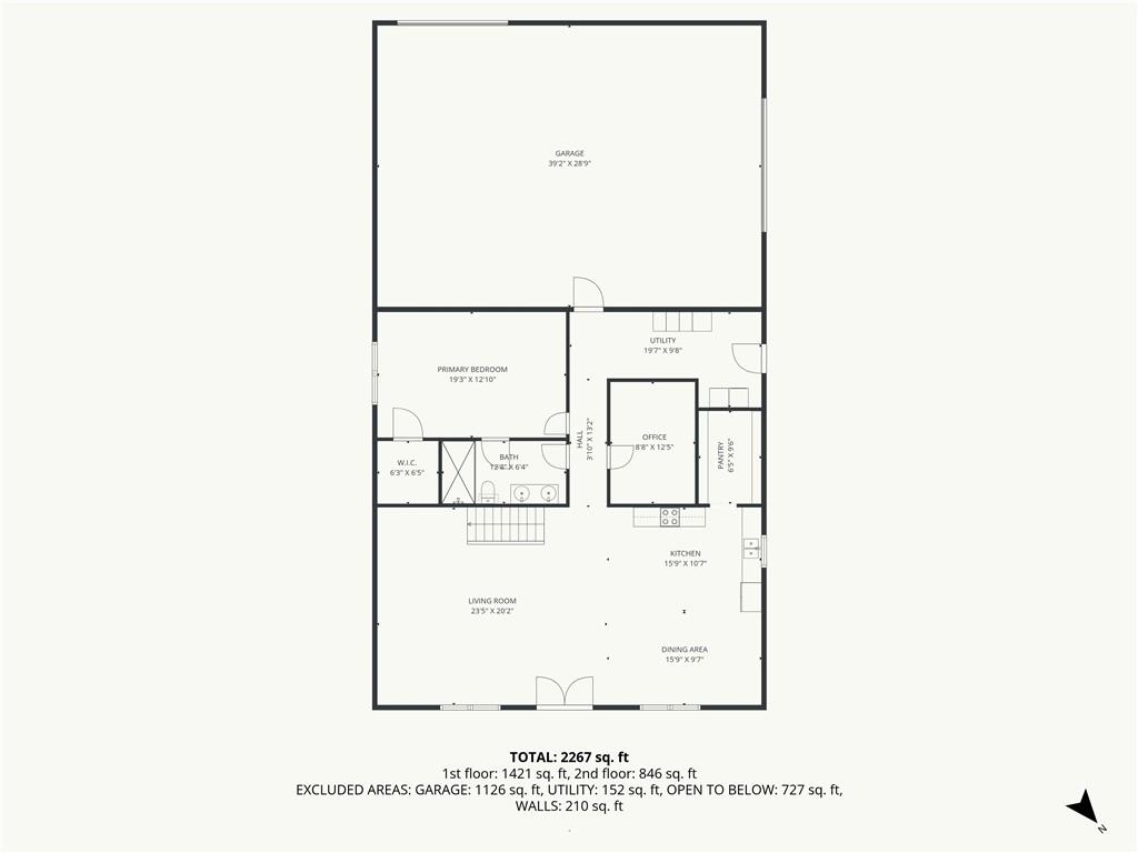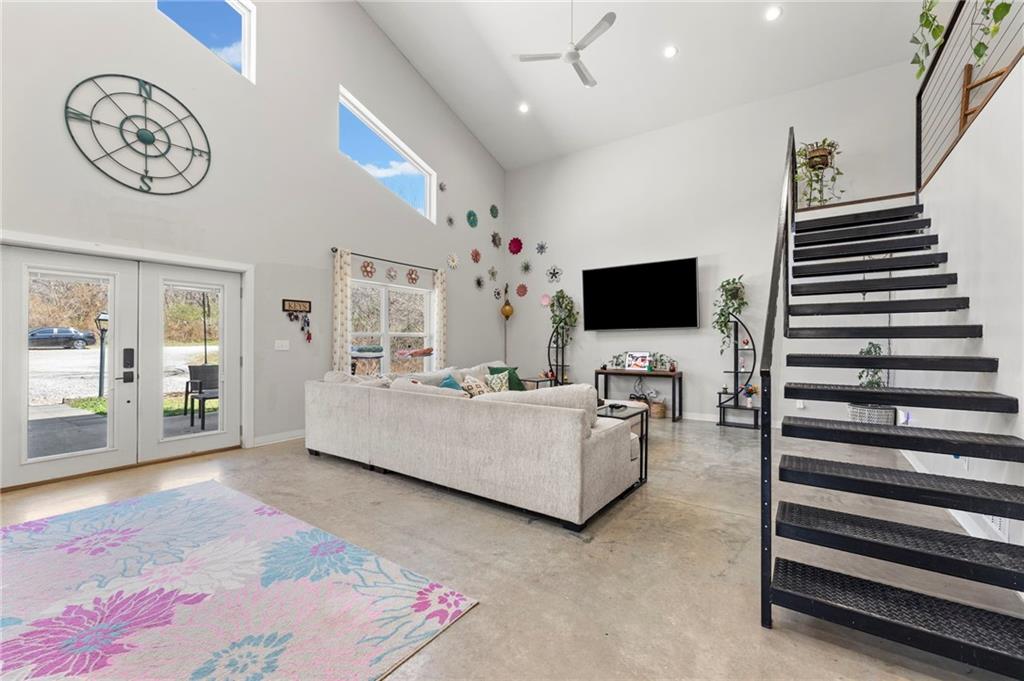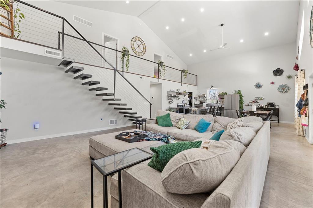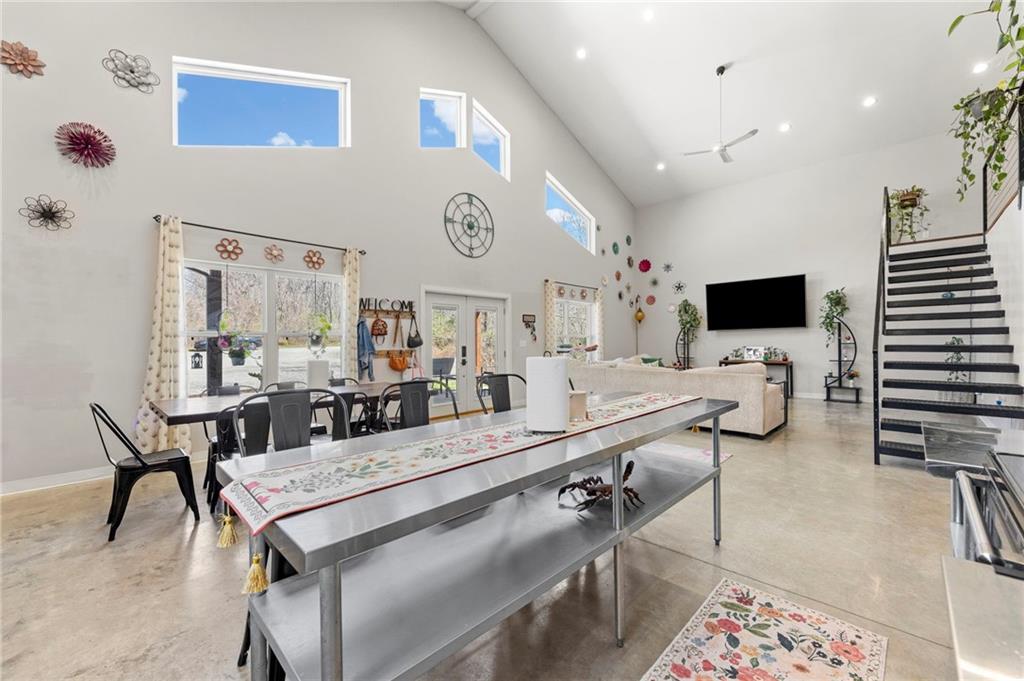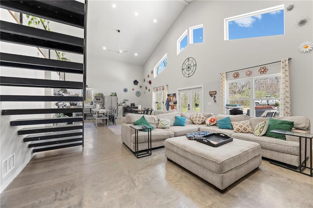 Live the barndominium lifestyle on nearly 10 acres! This 3-bedroom, 2-bath home blends open-concept modern living with rustic, functional charm. The spacious living room, dining area, and kitchen flow seamlessly, and the kitchen’s walk-in pantry keeps everything organized for daily life or entertaining. The primary suite on the main floor offers a private retreat with a double-sink vanity. Flexible office space can easily become a guest room, playroom, or workspace. Upstairs, two bedrooms share a Jack-and-Jill bathroom, perfect for family or visitors. Outside, the massive 1,200 sqft attached garage/shop with an RV-height door, 30-amp hookups, plumbing, and electricity is ready for your RV, boat, or workshop projects. Nearly 10 acres give you space to garden, raise animals, or simply spread out and enjoy your own private paradise, all just minutes from town.