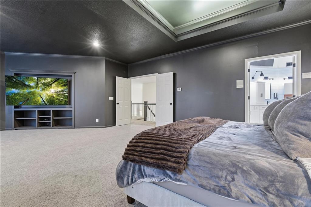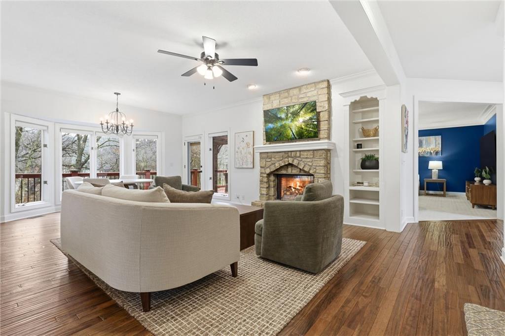 Picturesque, inside and out! Tranquility and beyond in this remarkable Briarcliff West Estate, situated perfectly on a private, .5 Acre, Cul-de-Sac Lot, overlooking green space, surrounded by mature trees, and naturally landscaped with a gently rolling creek. One of the BEST lots in the Northland! Modern style meets true traditional charm! Stately, soaring entryway, boasting designer chandeliers! Trendy color-drenched rooms formal dining room, and office! Freshly painted interior! Chiseled Wood Floors caress the main ling areas, high-end herringbone patterned carpet in dining, office, and living room with see through stone fireplace between living and heath room! Kitchen features granite counters, painted cabinets, island, SS appliances, 3 Season Room and spacious deck overlooking stunning forest views! HUGE 3-car garage with epoxy floors. Newer garage doors! Dual staircase connected to landing invites upstairs to a fully updated primary suite featuring custom blinds/drapes. Color-drenched walls, spa-like bathroom with top of the line hot-tub, sauna, walk-in shower, huge closet, and 2nd washer/dryer! 2nd/3rd Connected bdrm/bath and 4th bedroom suite! Lower level has ample recreational space, LVP Flooring, covered patio overlooking the most serene view in Kansas City! 5th bedroom, 6th non-conforming bedroom/office, tons of storage and unfinished area with exterior double doors, perfect for a workshop! 1.5 year young 50 year Gand Manor Roof! Subdivision Amenities include Pool, Playground, Tennis Court, and Trails! Stroll to Briarcliff Village and enjoy some of the best restaurants and shopping in Kansas City! Be anywhere in the city in a flash with the convenience of all major interstate access within a mile! KCI airport is only a quick 15-minute cruise. More details and photos coming soon!!! LOVE WHERE YOU LIVE!!!