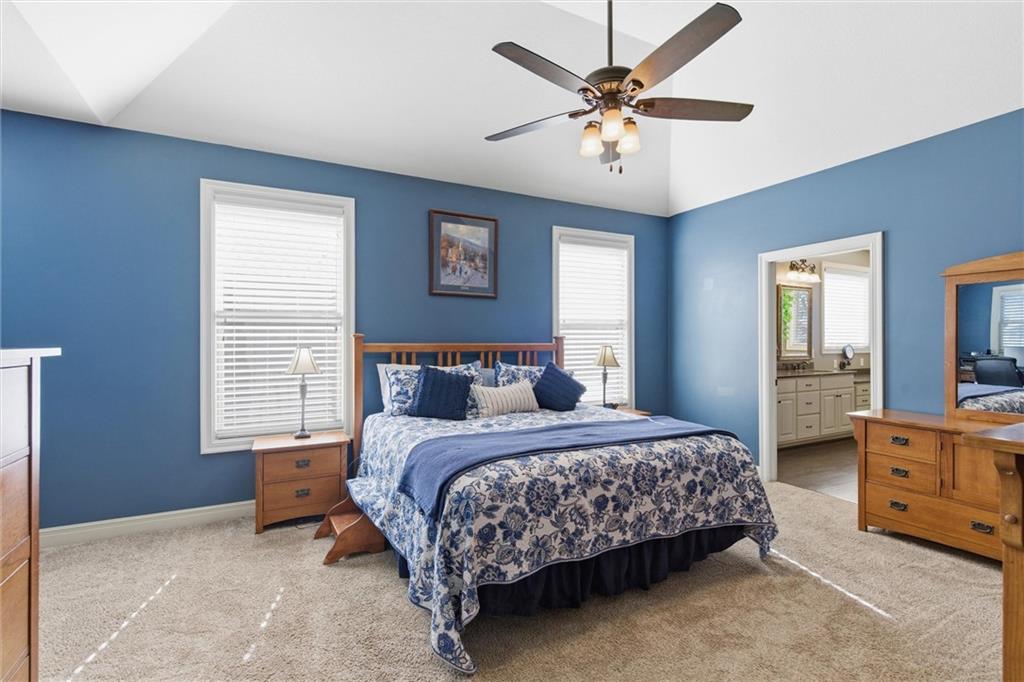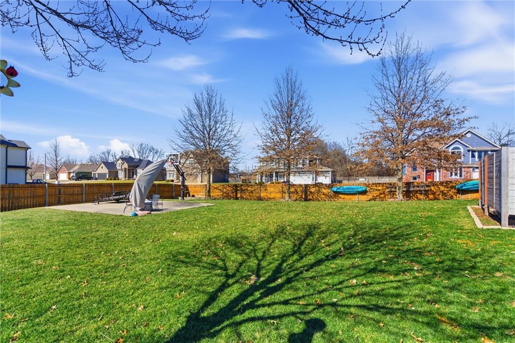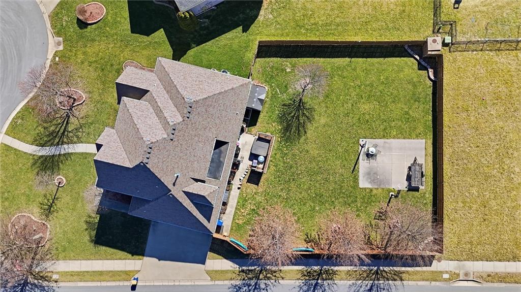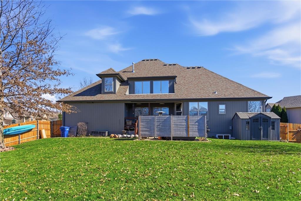 Welcome to this beautifully maintained 1.5-story home offering space, function, and timeless style on a large estate corner lot in Lee’s Summit. With a rare layout featuring both a spacious primary suite and secondary bedroom on the main level, this home is designed for flexibility and everyday comfort. Step inside to soaring ceilings, rich hardwood floors, and an inviting great room filled with natural light. The main level also includes a private office/den with custom built-ins, a formal dining room for gatherings, a mud room with built-in boot bench, and a laundry room complete with cabinetry and utility sink. The kitchen offers abundant cabinetry, granite countertops, stainless steel appliances, and a large island that opens seamlessly to the living area. Upstairs, you’ll find a versatile loft with built-in desks and cabinets, three generously sized bedrooms, and a full bath—perfect for family or guests. The finished lower level expands your living space with a large family room, full bar, bedroom, full bath, and a non-conforming room currently used as a gym. There’s still ample unfinished storage with built-in shelving. Enjoy outdoor living with a covered deck, patio, partial basketball court, privacy fence, and expansive yard, ideal for entertaining or relaxing. A truly well-cared-for home offering room to live, work, and play.