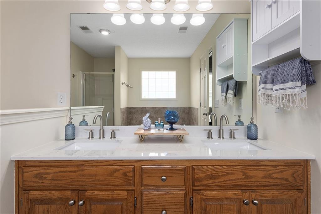 Located in the highly sought-after Bristol Highlands within the popular Bristol Park neighborhood, this beautifully maintained 2-story home offers stylish updates and exceptional functionality throughout. So many updates to the main and upper level. You enter onto a expansive covered front porch and freshly painted front door. The heart of the home is the bright, spacious kitchen featuring modern LVP flooring that extends into the entry and laundry room. New quartz counters, a tile backsplash, and dark stainless appliances provide both elevated style and everyday practicality. Upscale dark stainless appliances are a great contrast to the light counters. A generous kitchen dining area and walk-in pantry add convenience, while the drop zone off the garage keeps coats, backpacks, and daily essentials organized. French doors lead off the kitchen to the deck. The main level also includes a welcoming living room with vaulted ceilings, a stunning fireplace, and brand-new plush carpet, along with a dining room featuring wood floors and large windows that bring in abundant natural light. Upstairs, the primary suite impresses with a vaulted ceiling, walk-in closet, and a spacious bath complete with double vanity and jetted tub. Three additional generously-sized bedrooms and an updated hall bath complete the upper level. All bathrooms (2 full, 1 half) have been refreshed with new vanities, fixtures, and fresh paint. The upper level has the same brand new plush carpet as living room and stairs. The finished lower level offers a versatile recreation space divided into two functional areas, along with a convenient half bath. Major systems—including HVAC, water heater, and roof—are approximately five years old and have been recently serviced. Outside, enjoy an updated deck, refreshed landscaping, storage shed, and a flat lot perfect for outdoor living. With thoughtful updates, solid mechanicals, and move-in ready appeal, this home is a must-see.