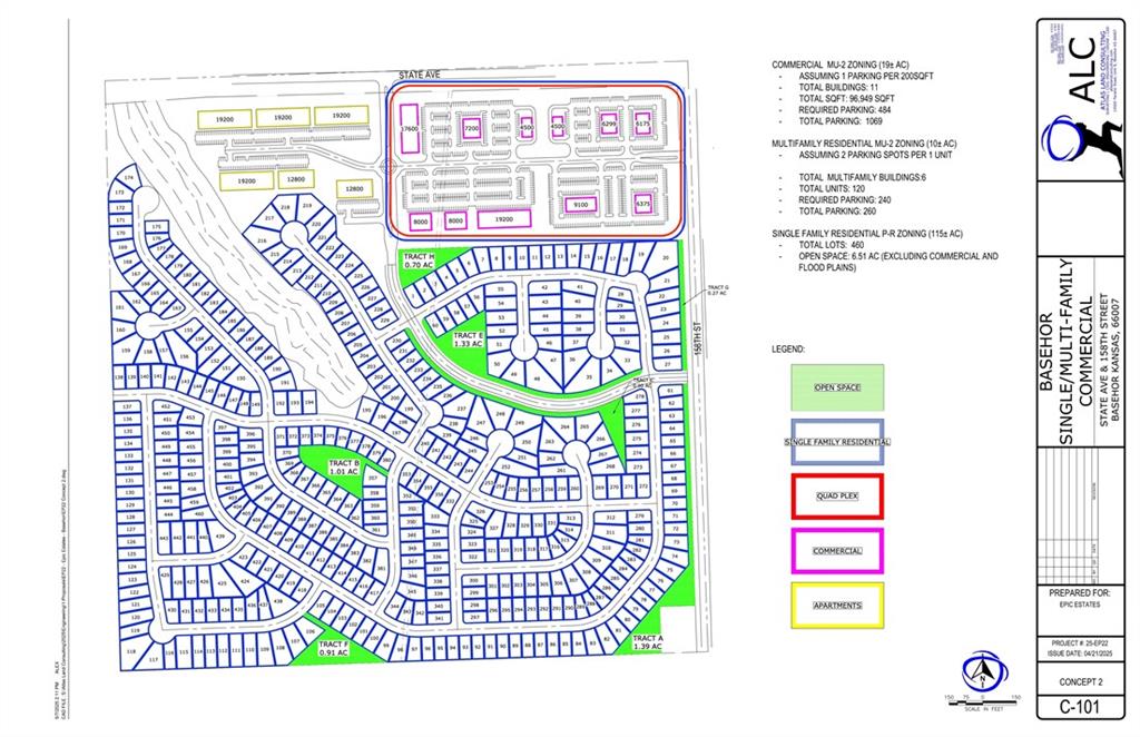 Multiple listings on-site. This listing is for the highlighted section of the plan only. Outstanding 21.86± acre commercial development opportunity at 18625 168th Street, Basehor, KS 66007. This offering represents the highlighted commercial portion of the master plan and is positioned to become a cornerstone retail and business destination within one of Basehor’s fastest-growing corridors. Prime Visibility & Positioning Located directly across from the new Fareway Grocery Store, this tract benefits from strong daily traffic counts and built-in consumer activity. Immediate proximity to Basehor-Linwood schools further enhances daytime population and long-term retail demand. Infrastructure in Place • Water mains along north and east property lines • Sewer extended approximately halfway into the site • Utilities available on or immediately adjacent • Reduced development timeline and lower upfront capital costs Scale & Flexibility One of the largest remaining commercially zoned tracts along the Hwy 24/40 corridor, offering the rare opportunity to design a cohesive retail center, mixed commercial campus, grocery shadow center, medical plaza, or large-format retail development. Regional Growth Advantage Strategically positioned within minutes of the Legends area and the greater Kansas City metro, the site captures both regional traffic and strong local rooftops. As residential growth accelerates in Basehor, this property stands to serve as a primary commercial hub for the community. Development Ready Preliminary site concepts have been prepared, allowing developers to move efficiently toward approvals and vertical construction. Investment Highlights • 21.86± acres – Commercial zoning • Direct frontage on paved, public-maintained roads • High-visibility corridor location • Adjacent to new grocery anchor • Located within an expanding residential growth market A rare large-scale commercial opportunity with infrastructure advantages.