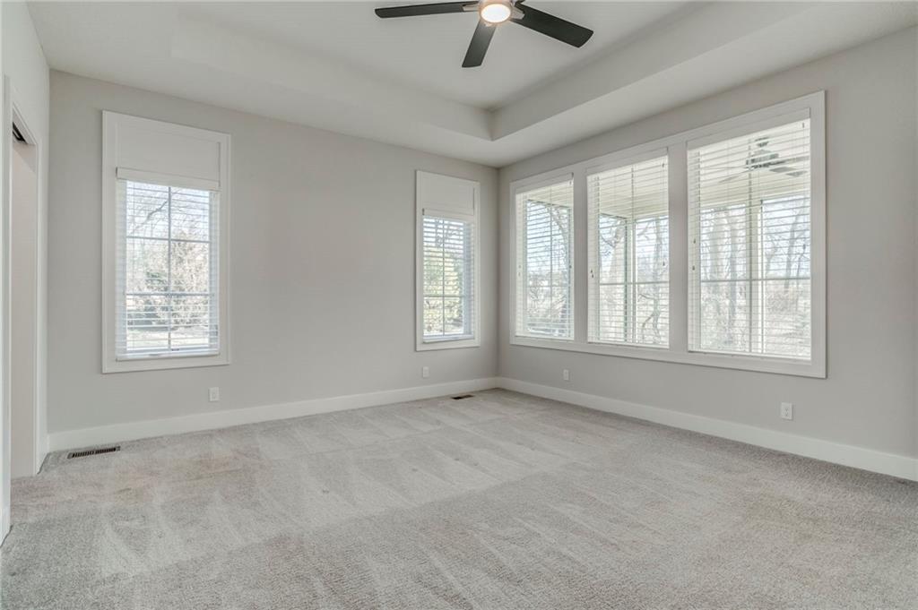 Welcome to maintenance-provided living at its finest in the highly desirable Enclave of Mill Creek. Built by Dusty Rhodes Homes, this beautifully designed reverse 1.5-story villa offers quality craftsmanship, thoughtful design, and an easy, lock-and-leave lifestyle in one of Johnson County’s most convenient locations. The main level features an open and inviting layout with high-end finishes throughout, including custom cabinetry, quartz countertops, and a spacious kitchen with island that flows seamlessly into the great room with gas fireplace. The primary suite offers a peaceful retreat with vaulted ceiling, spa-like bath, dual vanities, walk-in shower, and generous closet space. A second bedroom and full bath on the main level provide flexibility for guests or a home office, along with main-level laundry for everyday convenience. The finished lower level expands your living space with additional bedrooms, full baths, a large recreation room, and a versatile flex space perfect for a workout room, hobby area, or media room. Enjoy quiet mornings or relaxing evenings in the screened porch overlooking the low-maintenance outdoor setting. With exterior maintenance, lawn care, snow removal, roof repair and replacement, trash, and water all included, this home offers true peace of mind and simplified living. Ideally located with quick access to I-435, shopping, dining, and everyday amenities — this is comfortable, convenient living done right.