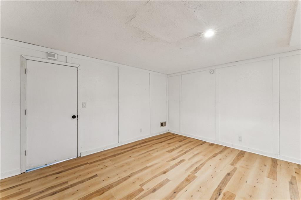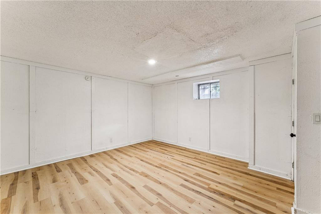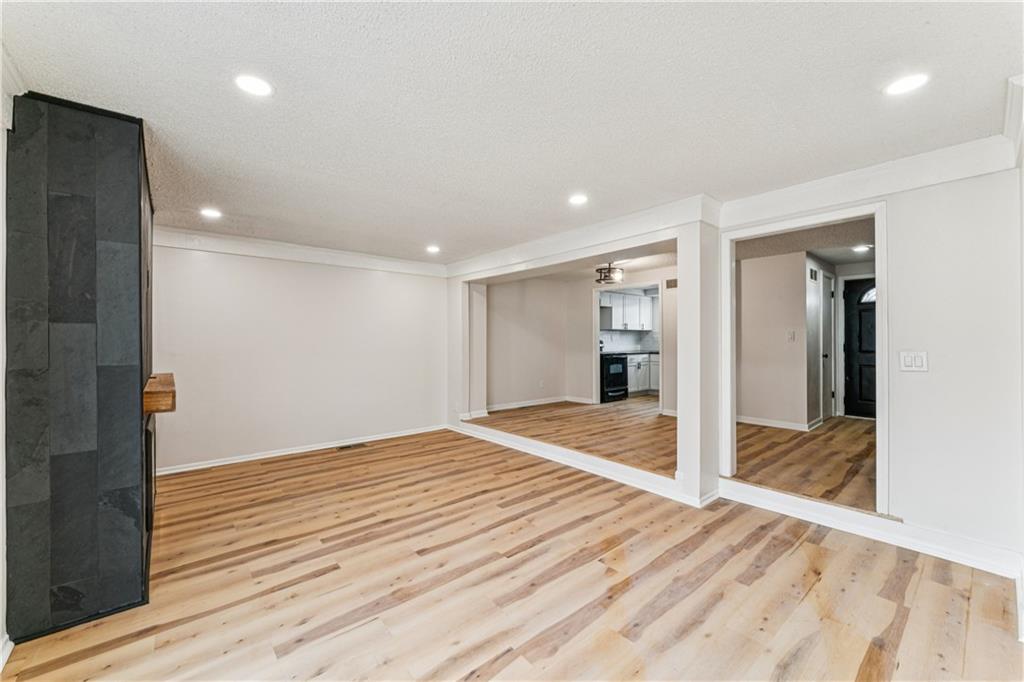 Beautifully updated townhome with a timeless contemporary design and bright, open feel throughout. The main level showcases light oak LVP flooring, sleek black hardware and lighting, and a slate-tiled electric fireplace that anchors the living space. The fully renovated kitchen features brand-new cabinetry, granite countertops, a classic subway tile backsplash, and stainless steel appliances. Upstairs, spacious bedrooms with vaulted ceilings continue the light and airy aesthetic, while the updated main bathroom offers new tile floors and surrounds, a stylish vanity, and modern fixtures. The finished basement provides a versatile bonus room perfect for a home office, rec room, or non-conforming bedroom. In addition to the cosmetic updates, the home includes a new furnace, A/C unit, water heater, and energy-efficient windows. Enjoy maintenance-free living with access to a pool, park space, and common areas; All the perks of homeownership without the hassle.