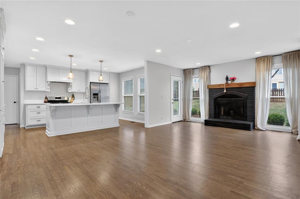 WELCOME HOME to this move-in-ready, two-story stunner in the heart of south Overland Park. Loaded with updates and well maintained by the current owners, this home sits on a quiet, tree-lined street, while also being close to all that the south OP/Leawood area has to offer!! Only a few minutes to retail, schools, parks, golf, etc. Once inside, you'll find an expansive great room with two-story ceilings, custom-tiled fireplace and large windows filling the space with natural light. The kitchen has been updated with quartz countertops, a modern backsplash, stainless appliances and a large island that's perfect for prep or hosting. The cozy hearth room has a second fireplace and gorgeous hardwoods, while the formal dining room could also double as a music space, home office or toy room. Upstairs you'll find four large bedrooms, two full baths. The basement provides for ample storage and the future finish possibilities are endless. With a newer roof (Fall 2025), newer mechanicals (HVAC units 7 years; HWH only 6 months old!), expanded back patio (imagine summer evenings relaxing with friends) + fresh exterior paint (2025, inc. wood rot repair) -- buyers can simply move in and start to enjoy ALL that this beautiful home, and neighborhood, have to offer. Show and sell!!