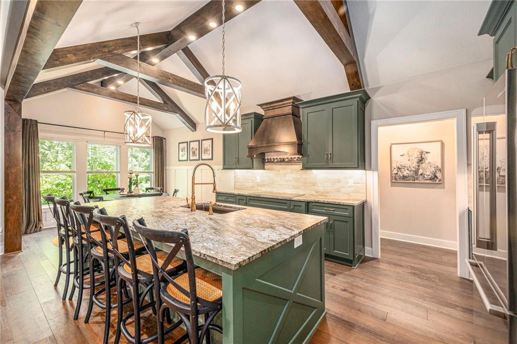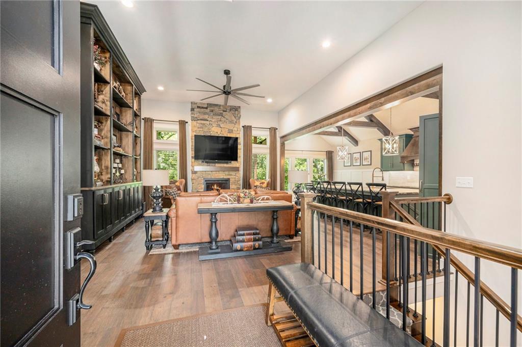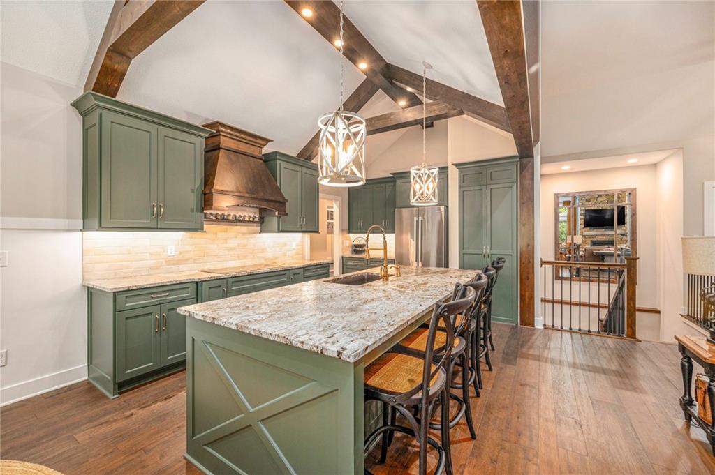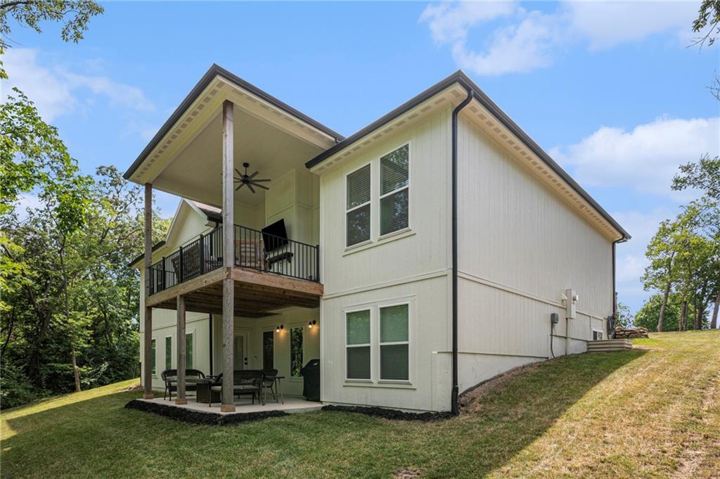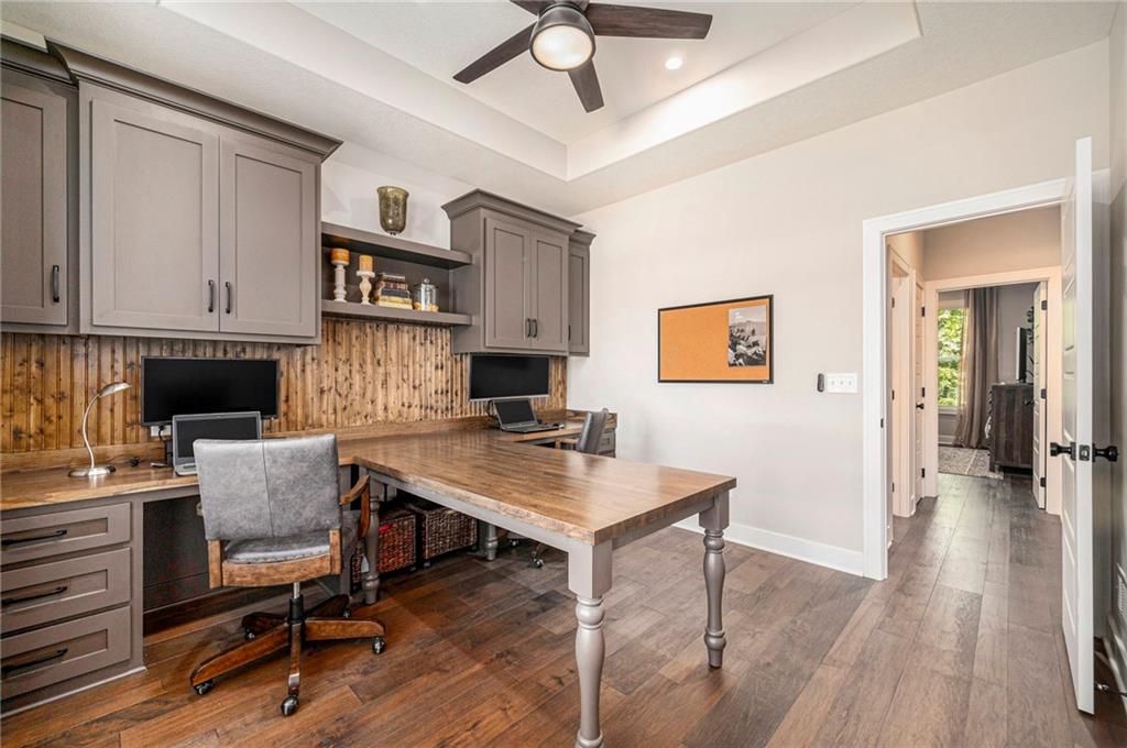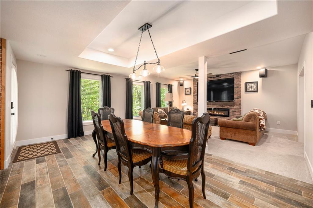ONLY 4 YEARS NEW! TOO MANY upgrades to list, see Upgrades and Amenities Sheet and Receipts under Supplements. NO DOGS OR ANIMALS, NO SMOKING. Better than New Reverse 1.5 Story Walkout with 5 bedroom, plus a lower level office or workout room on a 1.01 acre lot. Oversized kitchen cabinets with spice drawers and various pullouts, HUGE, Tall walk-in Kitchen Pantry. Upgraded granite countertops in kitchen, 3 bedrooms on main floor and 2 Bedrooms upstairs bathrooms. Master Bedroom has vaulted ceiling and fantastic view of greenspace overlooking 1.1 acre. Master Bathroom has a large shower with 2 Rainforest Shower Heads, vanity and makeup area. 24 ft deep 3-car Garage. MULTIGENERATIONAL: Lower Level has HEATED ceramic Floors in Kitchen and Dining area! Could be an apartment with separate entry someone could live in with beverage & wine fridge that stays, dishwasher too. LL Custom Cabinets and Cabinetry. Workout room, 2 bedrooms and full hall bath with tub over whirlpool jetted tub. Upgraded stair carpet. Upgraded OUTSIDE PUCK LIGHTING that you can turn various colors. CIRCLE DRIVEWAY!! Extra Height on vaulted living room and kitchen with floor to ceiling fireplace and bookshelves/cabinets. Garage: Smart Garage Door Openers, Enlarged to 33 ft wide x 22 ft deep. 2 hard wired cameras in front. Blink Doorbell, fingerprint front door lock. Peaceful and serene, Close enough to downtown Oak Grove while being surrounded by green oasis backing to GREENSPACE. 10 min to Blue Springs…close to Lee's Summit, downtown and I-70. There is room to put an outbuilding, but it has to match the exterior of the house.