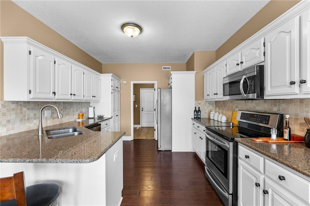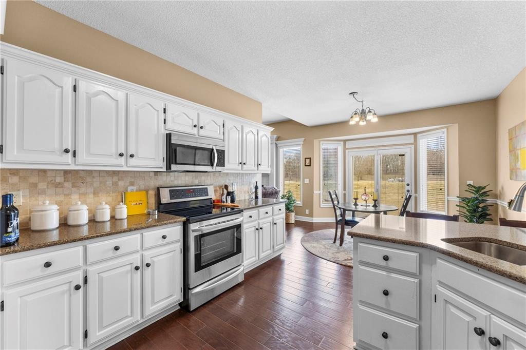 Welcome home to this well-maintained ranch in the desirable Villas of Northbrook subdivision! This 2-bedroom, 2-bathroom home offers almost 1550 square feet of MAIN level living space, including a spacious 1,492 sq ft of unfinished lower level space -- perfect for a REC room, home office, additional living area or bedroom and bathroom. The open layout features a comfortable main floor with soaring ceilings, engineered hardwood floors, main floor laundry and lots of natural light. Spacious kitchen with granite countertops, painted cabinets, stainless steel appliances and eat in kitchen make this home perfect for entertaining. Primary bedroom leads into the spacious primary bathroom with a double sink, oversized walk-in closet and shower with tile surround. Step outside to your private patio, ideal for relaxing or entertaining guests. The attached 2-car garage provides convenience and ample storage. Located in the Liberty School District with a new water heater in 2024 and a new furnace and A/C in 2019! Don't miss this opportunity to enjoy single-story living with room to grow in one of Kansas City's established communities with lawn and snow removal included in the HOA fee. Fridge, Washer and Dryer all STAY!