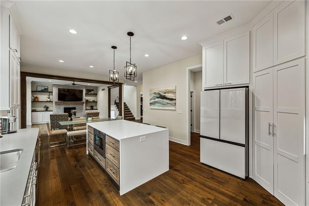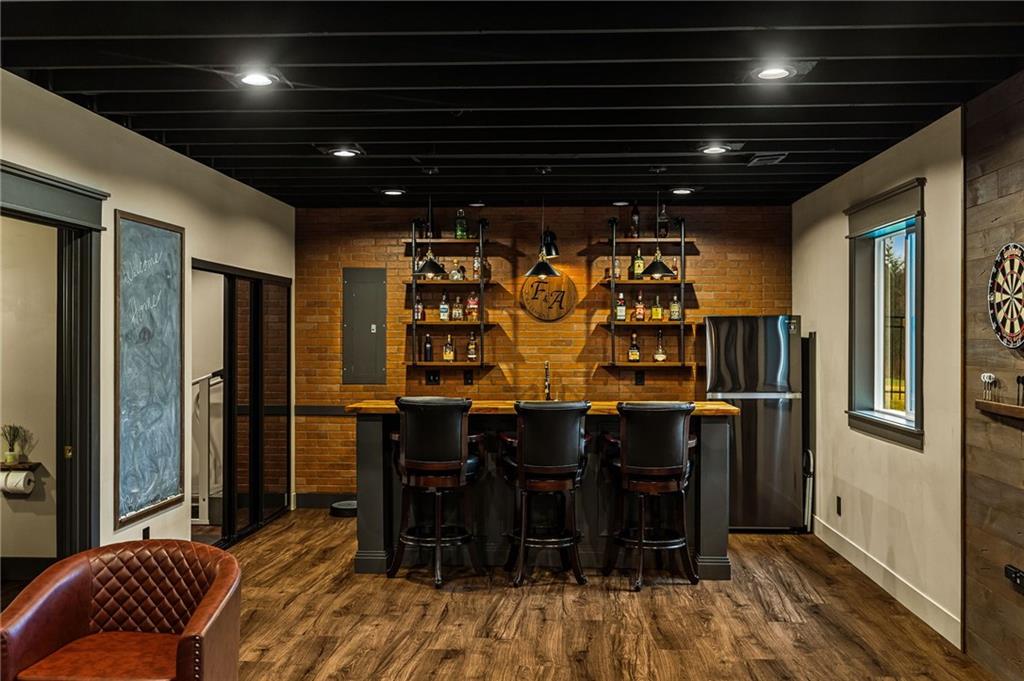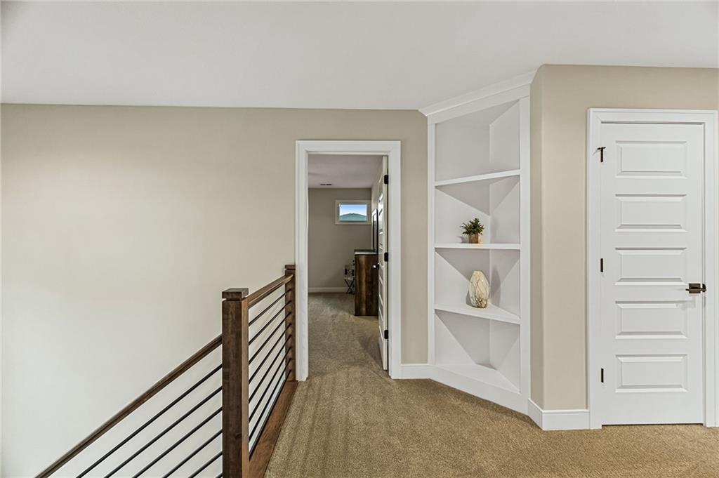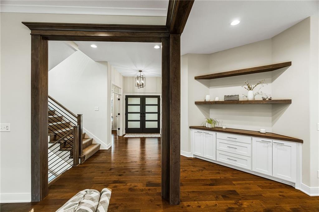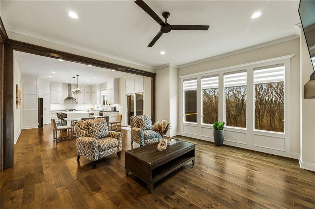 Some homes simply check the boxes. Others create a feeling the moment you arrive. Welcome to 9310 Carbondale Street in Lenexa, an award-winning Makenna two-story by Gabriel Homes on a premium treed walkout lot backing to peaceful green space. Built new for the current owners and thoughtfully enhanced since, it blends modern luxury with everyday comfort. Inside, 10-foot ceilings, hardwood floors, and expansive windows fill the home with natural light. The kitchen impresses with a quartz waterfall island, ceiling-height cabinetry, dramatic herringbone backsplash, and designer hood vent—beautifully blending style and function. The open layout flows into the great room, anchored by a floor-to-ceiling tiled fireplace. Upstairs, the spacious primary suite offers a spa-like bath and generous walk-in closet, while the secondary bedrooms provide comfort, space, and flexibility. The walkout lower level is unforgettable—moody, speakeasy-inspired, with a custom brick bar, cozy fireplace lounge, and dedicated theater area for movie nights, big games, and evenings with friends. Step outside to enjoy one of the home’s most inviting outdoor features. The screened-in deck and cedar pergola overlook tranquil green space, with sunset views stretching across the horizon. Highlights include bronze exterior windows, double front doors, upgraded 8-foot garage doors, steel fencing, underground downspouts, smart irrigation, under-cabinet lighting, and Lutron Caseta lighting in the finished basement. Nearly new and beautifully upgraded, this home offers the rare opportunity to enjoy new-construction quality with enhancements already complete—designed for gathering and savoring the moments that matter most.