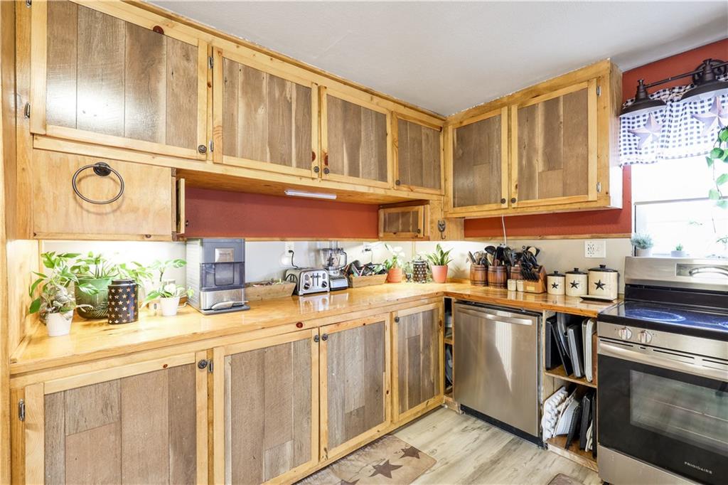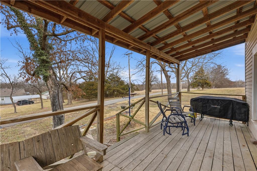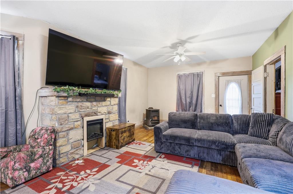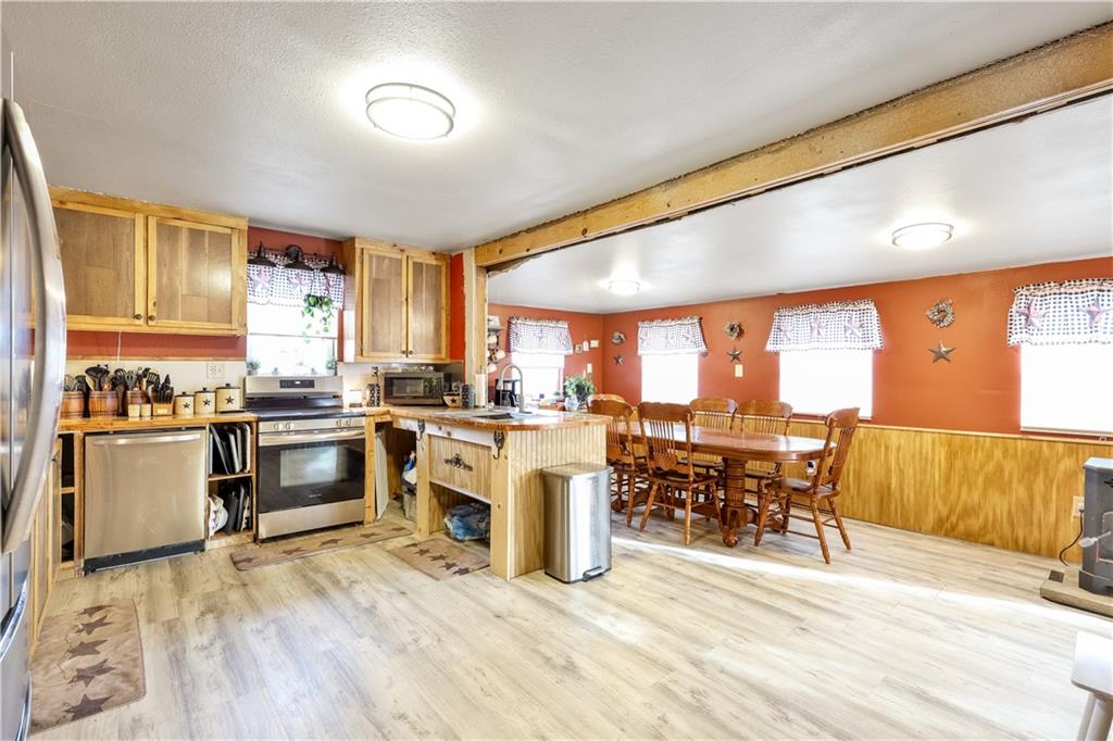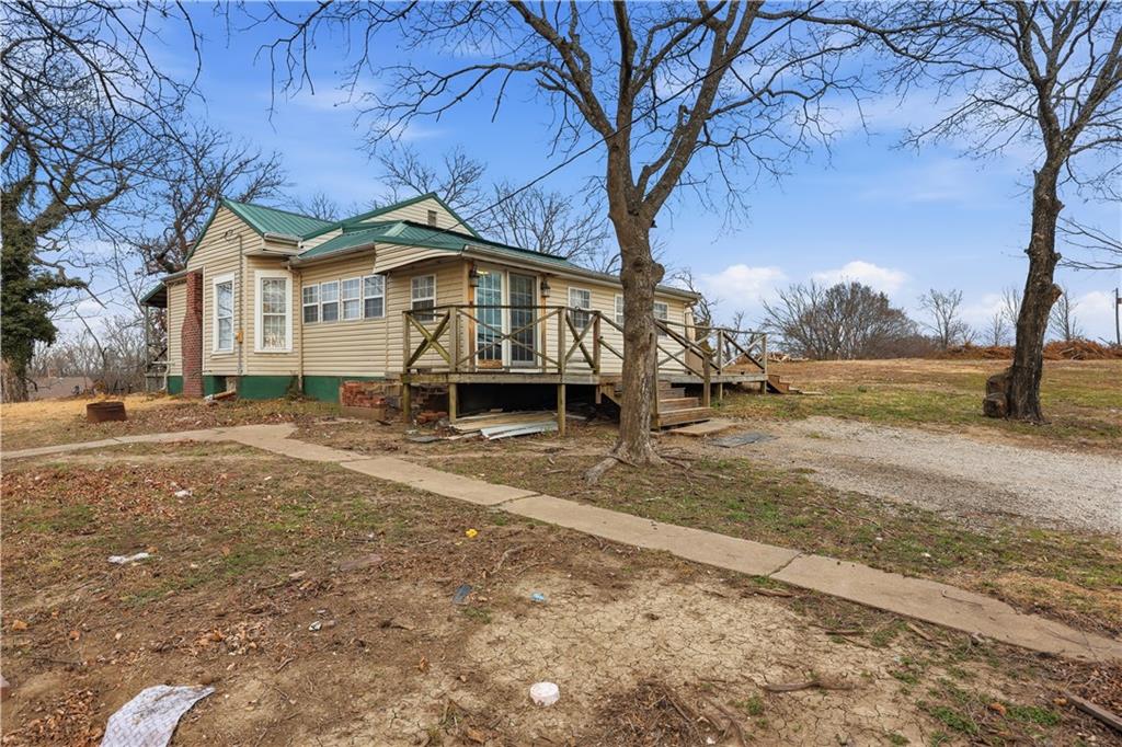Surrounded by trees, this 1920’s bungalow farm house sits atop a hill on 2.6 acres. Rustic character is on display throughout with warm tones, wooden cabinetry and butcher block countertops, hardwood floors, and the original stone fireplace. Property features a spacious deck, covered front porch, two wood burning stoves, two outbuildings, and an unfinished basement. The home is conveniently located on the edge of town, inside city limits, but sits beautifully on small acreage, giving you a unique blend of privacy and convenience - the best of both worlds. If you've been looking for a home and a few acres at an affordable pricepoint, don't overlook this one!