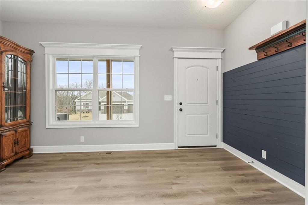 Welcome to your ultimate dream home, where modern farmhouse elegance meets high-tech luxury! This stunning, nearly-new two-story residence in the highly sought-after Woodbury community is packed with the "must-have" features that today’s buyers crave. From the moment you step inside, the open-concept main floor captivates with its designer shiplap accent walls and a gourmet kitchen that serves as the heart of the home. You’ll fall in love with the custom staggered cabinetry, sleek granite countertops, and a functional center island perfect for meal prep or casual dining. The layout is thoughtfully designed for convenience, featuring a bedroom-level laundry room and four spacious upstairs bedrooms, including a primary suite with a large walk-in closet that feels like a private sanctuary. The finished basement is a true showstopper, offering a lifestyle experience you won't find anywhere else. It features a professional-grade home gym illuminated by incredible hexagonal LED "honeycomb" lighting, a dedicated creative studio or gaming office, and a spacious media room complete with a built-in Murphy bed for effortless guest hosting. Step outside to your private outdoor oasis, where a large covered patio provides the perfect setting for relaxation. Whether you are soaking in the hot tub, watching the big game on the outdoor TV, or enjoying the peaceful view of your expansive backyard, this home is built for year-round entertaining. Complete with a spacious 3-car garage and located within the top-rated Grain Valley School District, this property offers the perfect blend of style, tech, and comfort. This is more than just a house; it’s the lifestyle upgrade you’ve been waiting for!