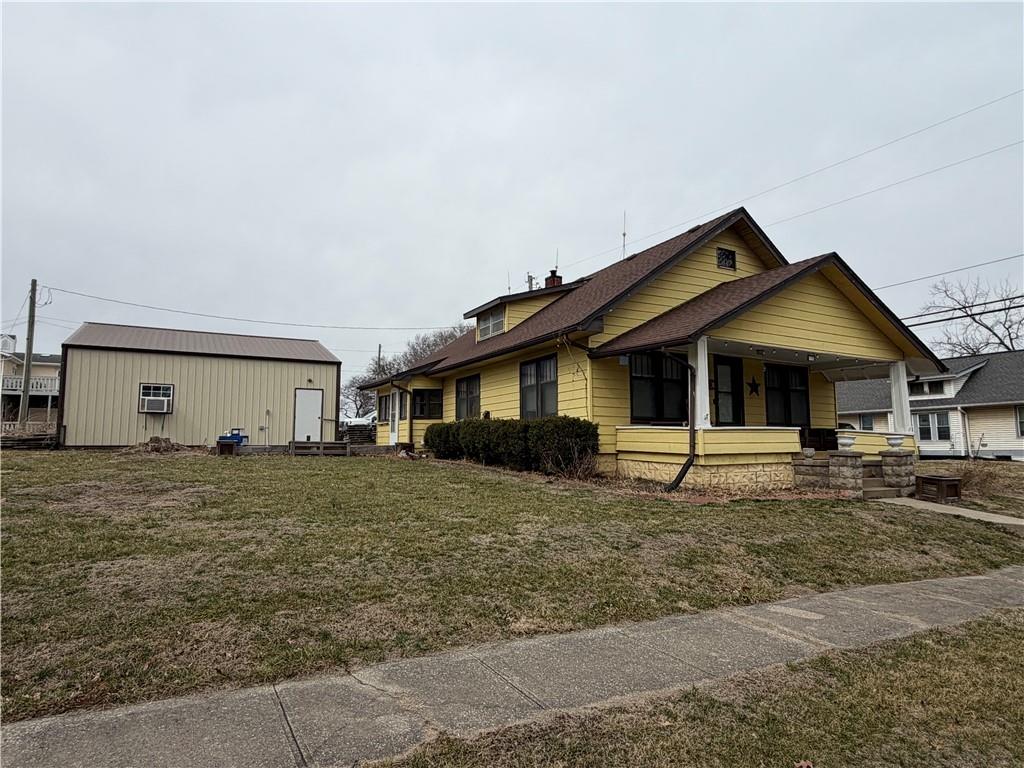 Charming story and a half on north end of Cameron on Chestnut Street! Two bedrooms and one full bathroom on main level. Third bedroom upstairs with a bonus room that could be utilized as a non-conforming bedroom or play room. Nice sized dining room that opens up to the living room. Enjoy watching tv or just relaxing next to the built in electric fireplace! The laundry room is on the main floor too, and is located just off of the kitchen in the mudroom. Outside the home you can enjoy sipping coffee on the oversized front porch or go work on a special project in the 30x30 detached garage/shop. The shop has heated concrete floors, 200 amp service, and two overhead doors. All of this on two city lots. Lots of room and plenty of potential with this craftsman style home.