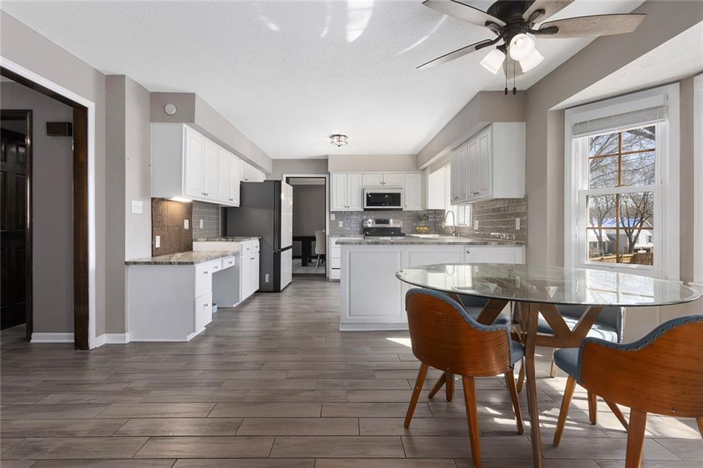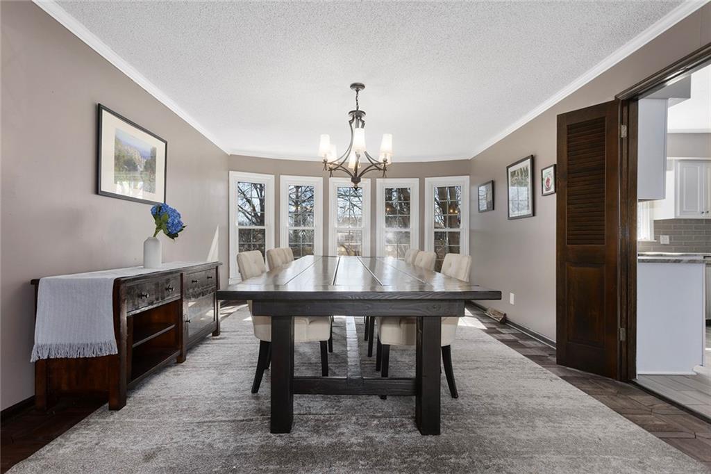 Back on the market previous contract terminated due to buyer circumstances, no fault of the sellers. Charming Tudor mid century with classic character and functional living spaces. Formal Living Room features a dramatic fireplace, abundant natural light, and crown molding. Spacious Formal Dining Room flows from the kitchen — ideal for entertaining. Hearth Room with brick fireplace and built-ins opens to a large deck overlooking the fully fenced yard. Luxury Primary Suite includes fireplace, double vanity, and generous storage. Finished walk-out basement offers a wet bar, fourth fireplace, and half bath. Located on a cul-de-sac in the coveted Staley/NKC School District in a market where homes in this region continue to hold value and see modest appreciation.