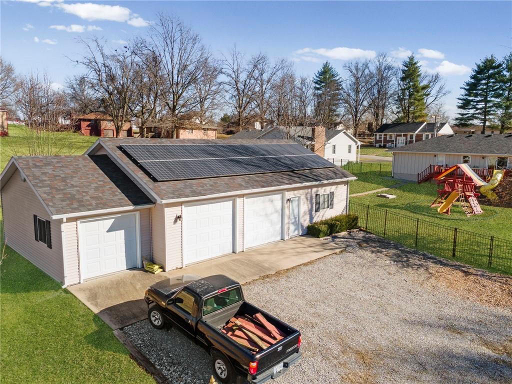Welcome home to this beautifully maintained 1,381 square foot, 3-bedroom, 2.5-bath property nestled in a highly sought-after secluded neighborhood on a rare double lot. This home combines modern efficiency, thoughtful upgrades, and exceptional bonus space — offering comfort, functionality, and long-term value. The inviting interior features custom kitchen cabinetry, updated appliances, and an ideal layout for both everyday living and entertaining. Dual-pane vinyl replacement windows provide energy efficiency and natural light throughout, while the new roof and newer gutters add peace of mind for years to come. Downstairs, a full walk-out basement offers incredible potential — finish it to create additional living space, a home theater, gym, or guest suite. The possibilities are endless. Energy-conscious buyers will appreciate the solar panel system that keeps utility costs to a minimum, along with a Generac whole-house generator that ensures a seamless transition to backup power whenever needed. A standout feature of this property is the impressive 30' x 40' outbuilding complete with its own bathroom and kitchenette — perfect for a workshop, home business, hobby space, or additional entertaining area. With privacy, space, modern updates, and unmatched versatility, this property truly checks all the boxes. Don’t miss your opportunity to own this exceptional home in one of the area’s most desirable neighborhoods.