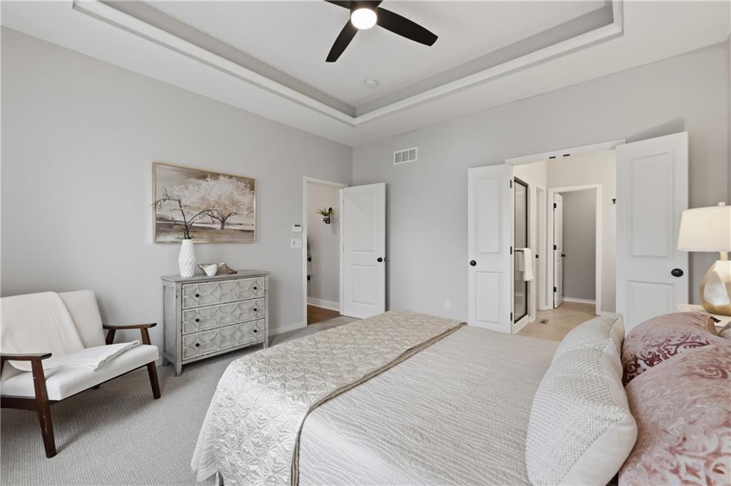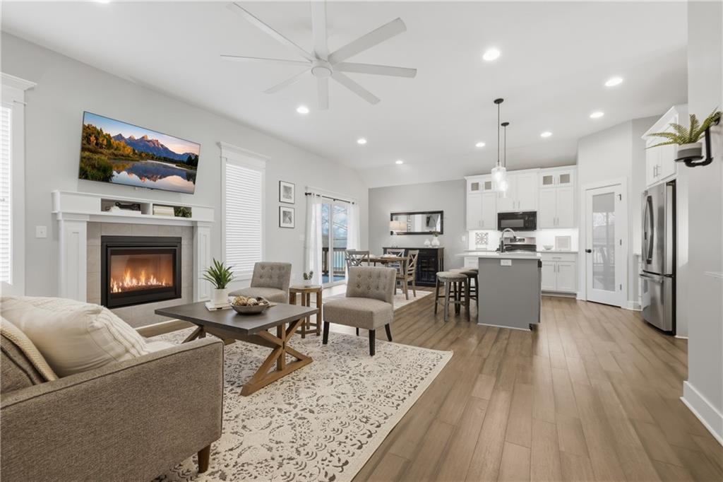 Next to new & ready for you! This beautifully maintained & spacious reverse 1.5 story home combines high end upgrades with a bright and airy design palate to create a peaceful and elevated vibe for its next owners. The open concept plan seamlessly blends the kitchen, dining & family rooms into a cohesive & comfy space that's perfect for entertaining. The kitchen is a chef's delight, with large center island, crisp quartz countertops, gas cooktop, stainless steel appliances & a large walk in pantry for all your grocery staples. Enjoy your morning coffee or evening cocktails while relaxing on the screened in deck. Inside, you'll find four well appointed bedrooms, including the spacious owner's suite with dual vanities, large shower and generous walk in closet. The finished lower level features a large open rec room with surround sound, two large bedrooms and a room full bathroom with dual vanities and private shower / toilet room. The property is located on a quiet street lined with newer homes, yet is just a short drive to both I-435 & I-470 for easy commuting throughout the metro. A must see!