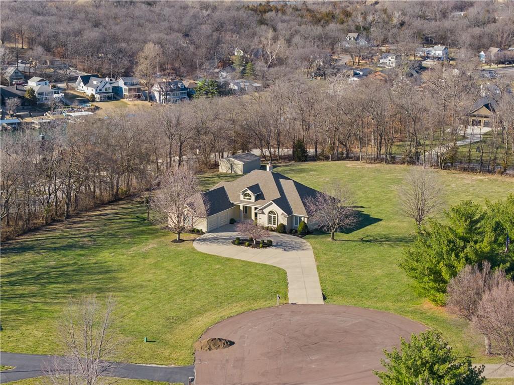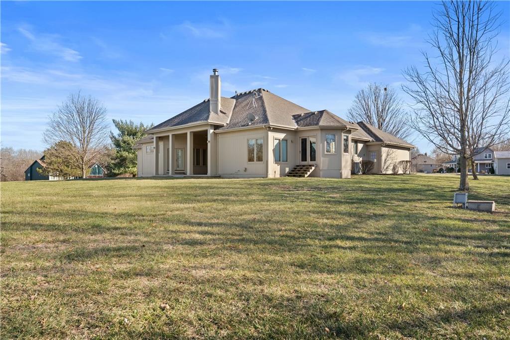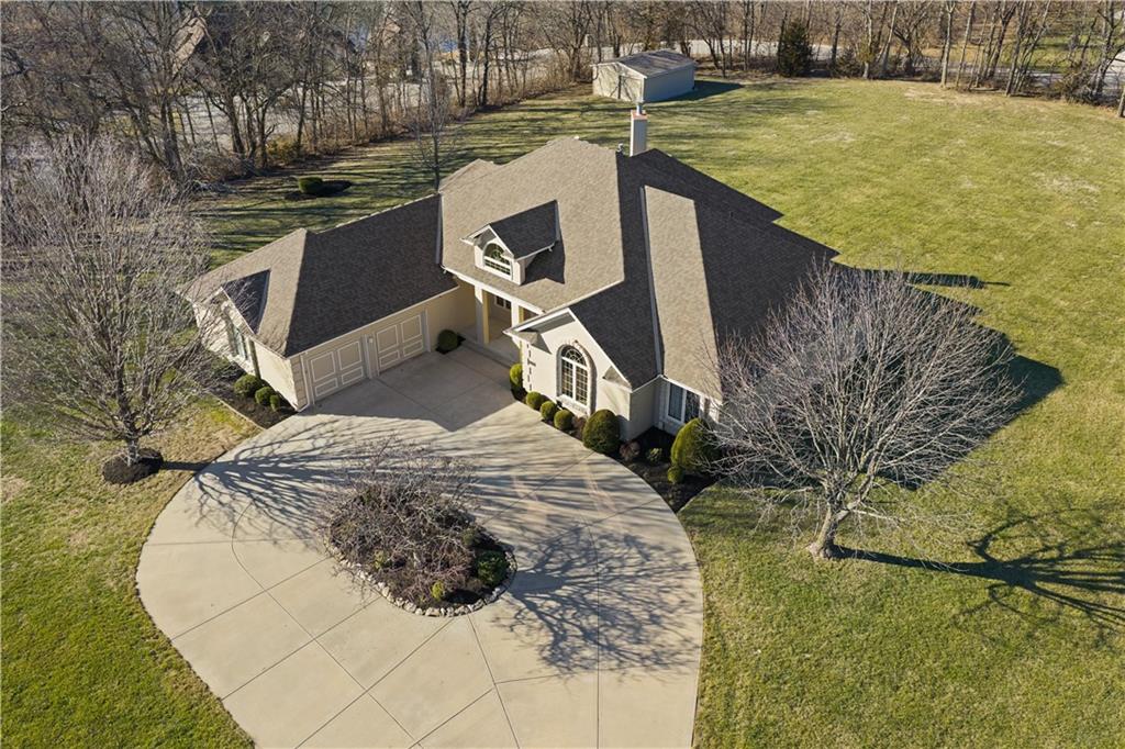 Nestled on approximately 2.2 acres in the sought after Easley Estates community of Lee’s Summit, this ranch home offers the space of country living while keeping everyday conveniences just minutes away. From the moment you arrive, the setting alone makes an impression with wide open views. Inside, the main level is thoughtfully designed for comfortable living and easy entertaining. All three bedrooms are conveniently located on the main floor. The home features an abundance of windows that bring in natural light and peaceful views of the surrounding acreage. The layout includes a dedicated home office, formal dining room, sunken living room, and an eat in kitchen featuring an abundance of cabinetry for storage and functionality. A main level laundry room adds everyday convenience. Take a moment to step outside and enjoy the lanai and the views that it offers. Wildlife, a morning coffee or an afternoon spent enjoying a new book, this will quickly become one of your favorite parts of the home. The lower level offers excellent flexibility. A fully finished room with a closet provides the perfect option for a fourth non conforming bedroom, workout room, playroom, or private guest space. The remainder of the basement has been lightly finished and is ready for the next owner to add their personal finishing touches and expand the living space even further. Step outside and enjoy the wide open backyard, complete with a storage shed for tools and equipment. The garage has been upgraded with durable epoxy flooring, adding both function and polish. Easley Estates is loved for its peaceful, acreage style living while still being incredibly convenient. Easy highway access makes commuting simple, and everyday essentials like grocery stores, restaurants, the library, and the hospital are all just minutes away. A rare opportunity to enjoy space, comfort, and location all in one property.