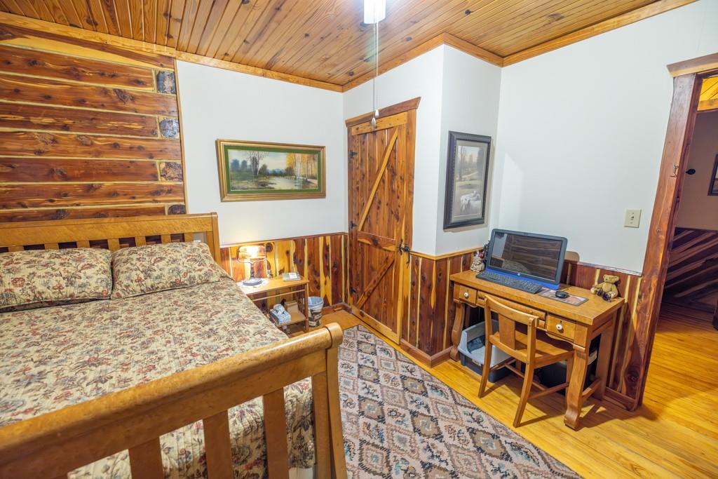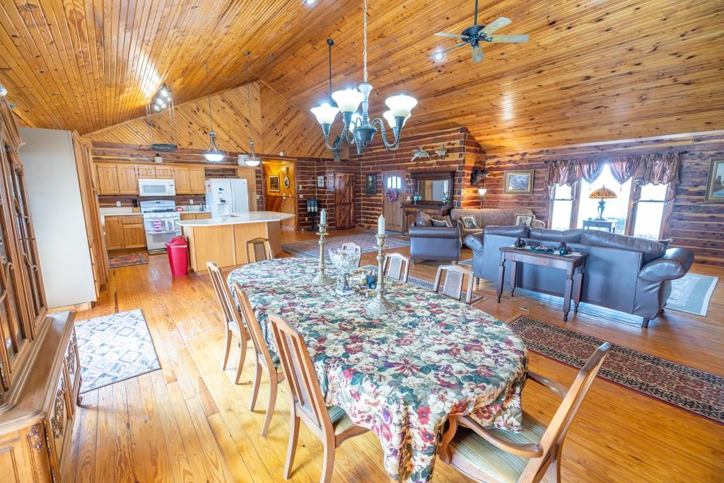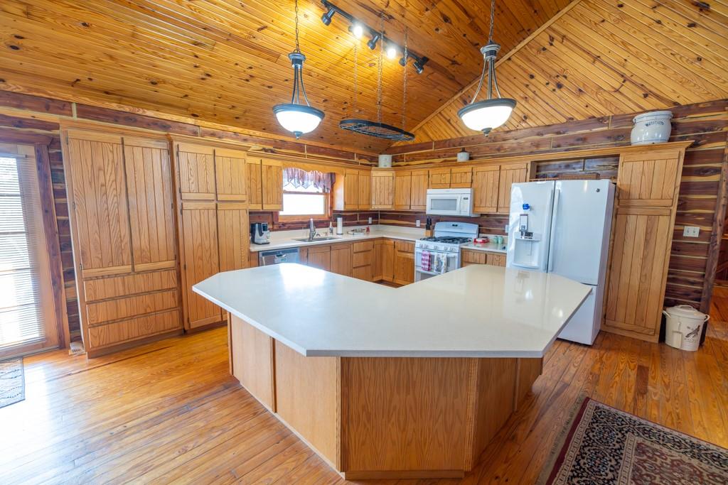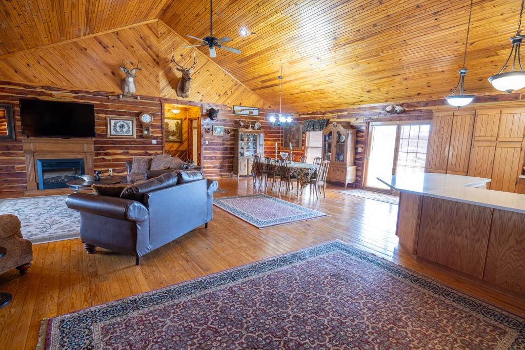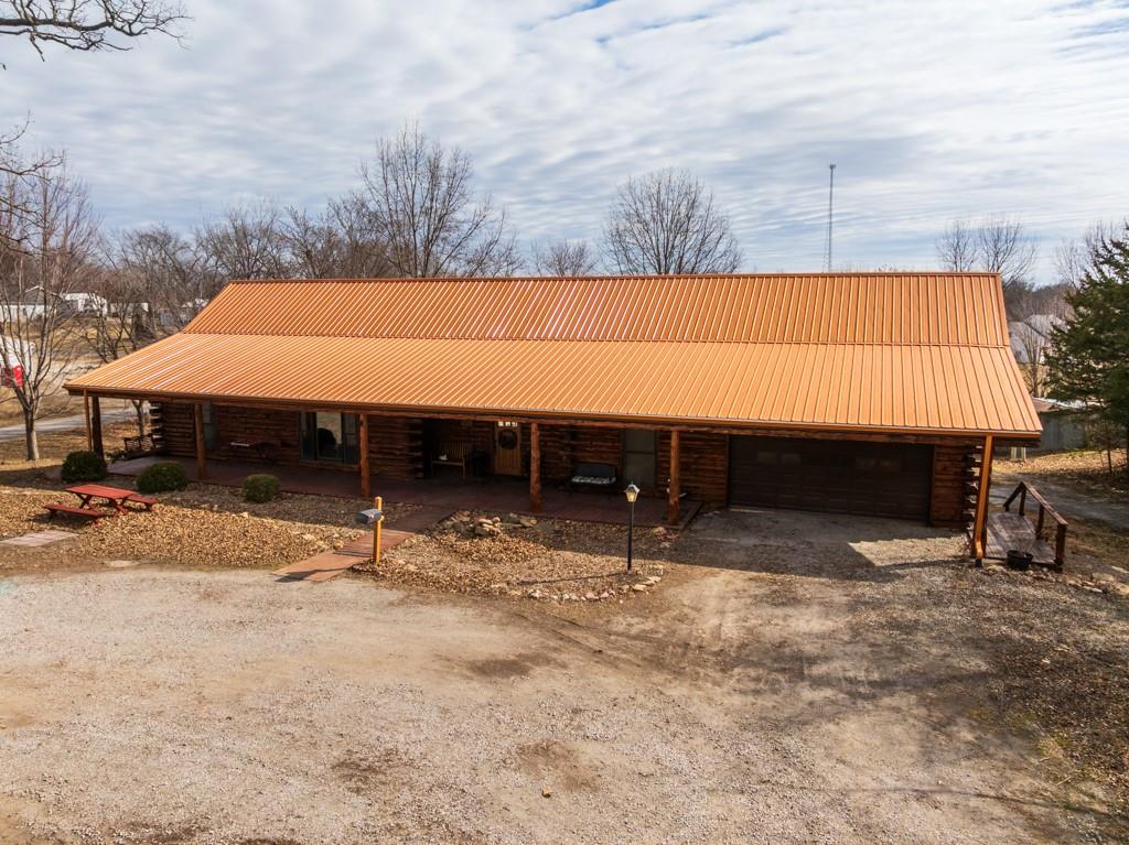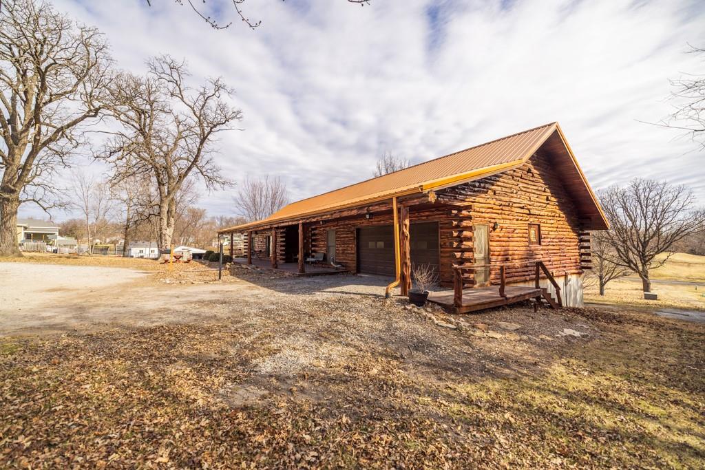 Log Home on 1 Acre Corner Lot This home combines rustic charm and modern convenience all in one. With true log walls and other natural accents, this home radiates a warm county feel right in the heart of town. With 3 bedrooms and 1 ½ bath, vaulted ceiling in the large open concept living room and kitchen, space for comfortable living and entertaining is abundant. The kitchen features custom oak cabinets and quartz countertops. The custom doors throughout the home and the large tile shower enhance the appeal of this incredible home. In addition to the 1920 square feet main level, there is a full unfinished basement, attached garage, full length front porch, and large back deck. The home has undergone numerous improvements in the last several months. The new copper metal roof and guttering, complete resealing of the logs, and new water heater are just a few of the items enhanced. All situated on a 1.03-acre corner lot that includes nice trees and a storage shed, this property has many amazing features.