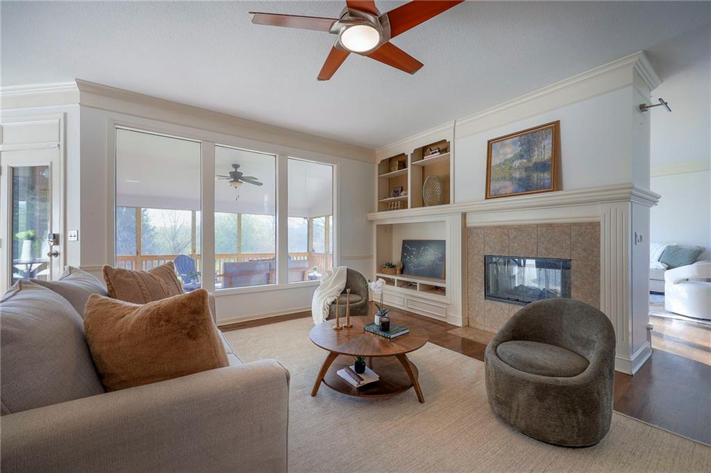 Beautiful in Brookhighland! This light filled & spacious two-story home offers 5 bedrooms and 4.1 baths. Thoughtfully designed with dedicated spaces for office, formal living and dining that flow seamlessly into an open floor plan hearth room. A half bath and one of two full-sized laundry rooms complete this level. Ideal for both entertaining and everyday living. With stunning views to green space, step outside into a beautifully built screened porch that opens on to the decks. Upstairs, the expansive primary suite provides a private retreat with a luxurious en suite bath, walk in closet, cupboard storage and a separate den area- complete with a second laundry. Additional generously sized bedrooms include one with its own en-suite and two that share a Jack and Jill bath—one enhanced by a versatile bonus space. The finished walk-out basement is perfect for entertaining or relaxing, complete with a 5th bedroom, full bath, movie screen, and bar. Step right out to the backyard that backs to expansive green space for added privacy and scenic views. Do not miss the oversized garage! With space for up to FIVE cars! Tandem space and custom built car-lift make this garage one of a kind! This custom built home is perfect for everyday life and filled with "extras", made for the good life and entertaining. NEW roof and gutters to be installed the week of May 4th and new garage doors coming soon (on order). Located in the award-winning Blue Valley School District, this home also offers quick access to Highway 69 and is just minutes from everything that makes Overland Park consistently recognized as one of the best places to live and work!