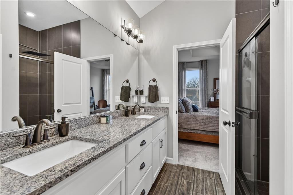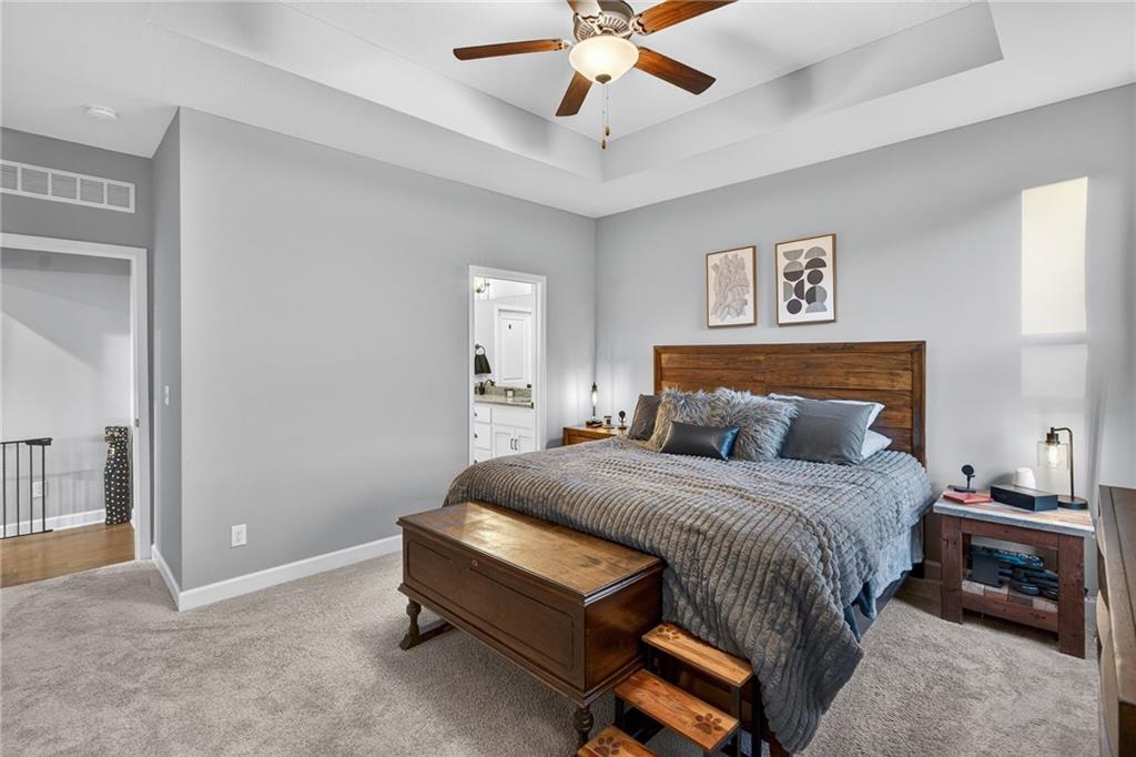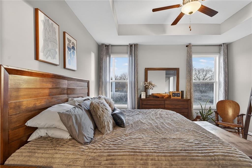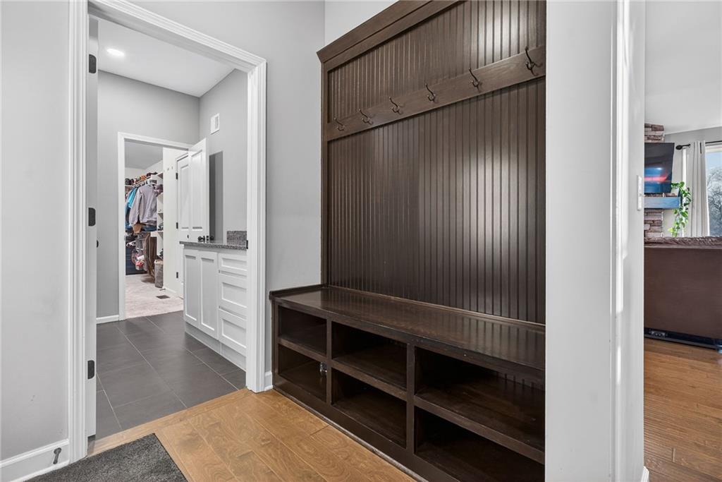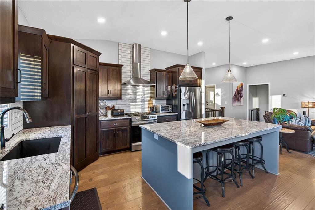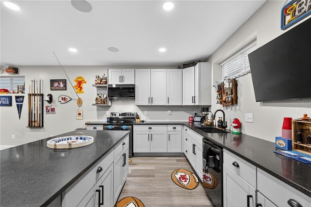 Beautifully maintained 4-bedroom, 3-bath home offering 3,456 sq ft of finished living space and a 3-car garage, located in the highly desirable Mill Creek community of Lee’s Summit. Designed for both everyday living and entertaining, this home features quality finishes, flexible living space, and peaceful backyard views. The main level showcases engineered hardwood floors, a spacious living room with a gas fireplace, and a well-appointed kitchen featuring stainless steel appliances, a gas burner range, and ample pantry space. Large windows bring in natural light while overlooking the scenic backyard. The primary suite offers a spacious walk-in closet with direct access to the upper-level laundry room, along with a large walk-in shower in the primary bathroom. Just off the 3-car garage, the mudroom entry includes built-in bench seating and hooks, creating a convenient drop zone for everyday organization. The garage also features a 240-volt outlet already wired and ready for an EV charger. The finished basement expands the home’s living space and is perfect for entertaining, featuring a dedicated theater area with surround sound, a second kitchen, additional laundry hookups, and a bonus room currently used as a home gym. Step outside to the fully fenced backyard and patio where you can relax and enjoy scenic views and frequent visits from deer and local wildlife. Located in the Mill Creek neighborhood, residents enjoy community amenities including a pool, fishing pond, walking trails, and playground, all within the highly regarded Lee’s Summit school district and just minutes from shopping, dining, and major highway access.
