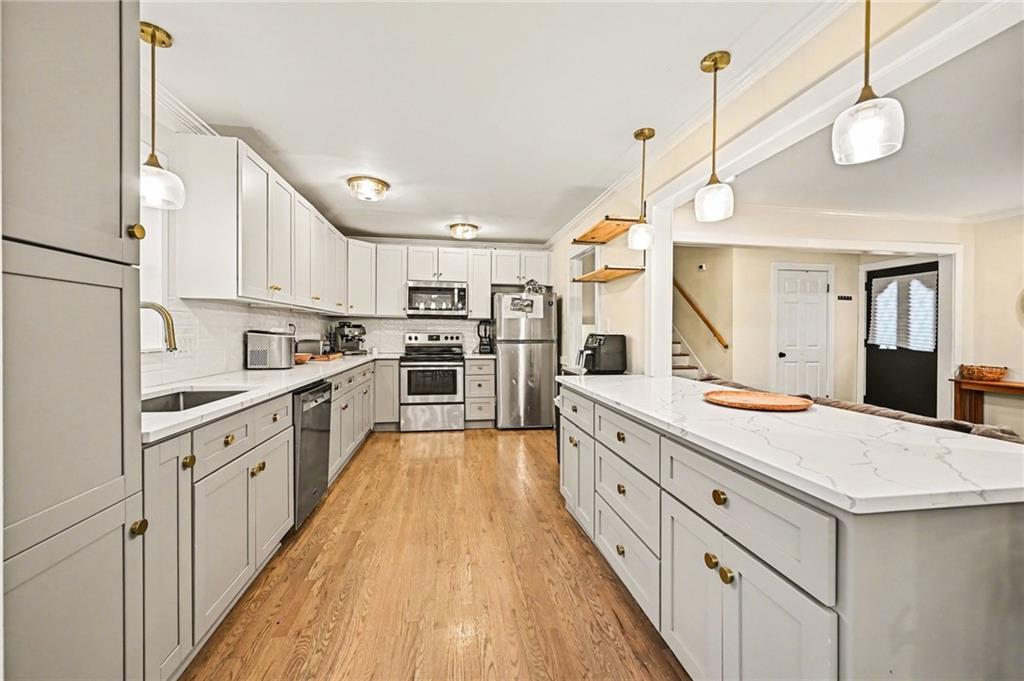 OPEN Saturday, noon to 2pm, Sunday 1-3pm. EVERYTHING NEW!! Spacious layout • Updated interior • Large deck + oversized shed • Expanded parking Almost everything with this home has been updated within the last three years. New roof, new HVAC, new new new. One of the larger homes in the neighborhood. Interior features include hardwood flooring in select areas, updated finishes, and a spacious kitchen with generous cabinet and counter space. Open living and dining areas provide flexible layout options for gatherings, work-from-home needs, or multi-use rooms. Everything has been refreshed, offering move-in ready convenience. The kitchen connects directly to the backyard deck, creating easy indoor-outdoor flow. Exterior features include a large deck overlooking the yard and an oversized storage shed suitable for tools, equipment, or hobby space. Circular driveway and additional parking space accommodate multiple vehicles. Backyard offers open space for recreation, gardening, or entertaining. Functional layout, recent updates, ample parking, and outdoor storage make this property a stand-out in the neighborhood.