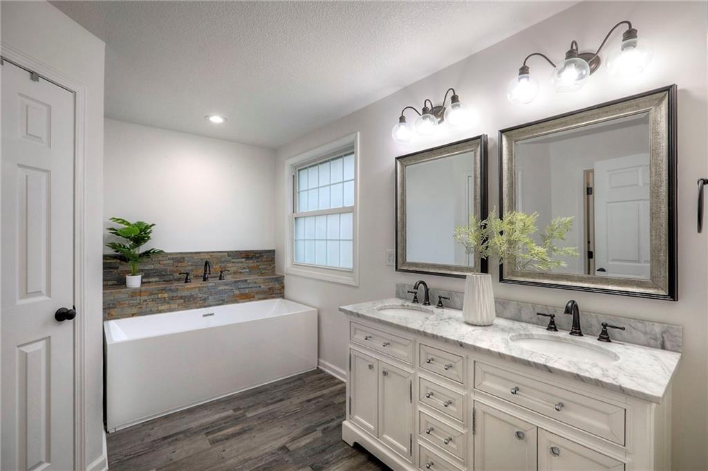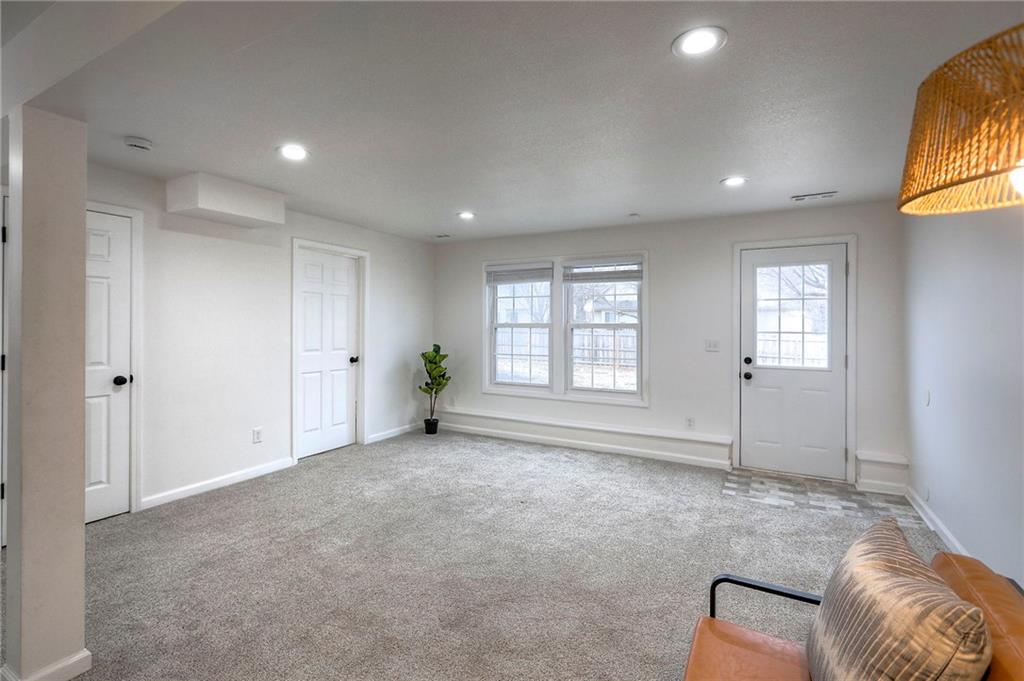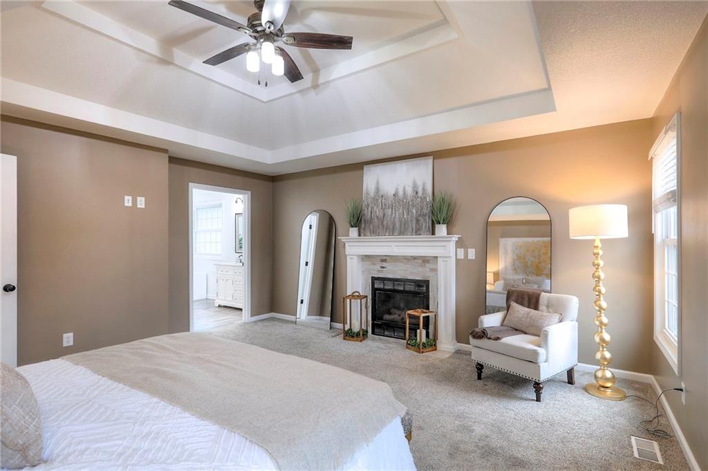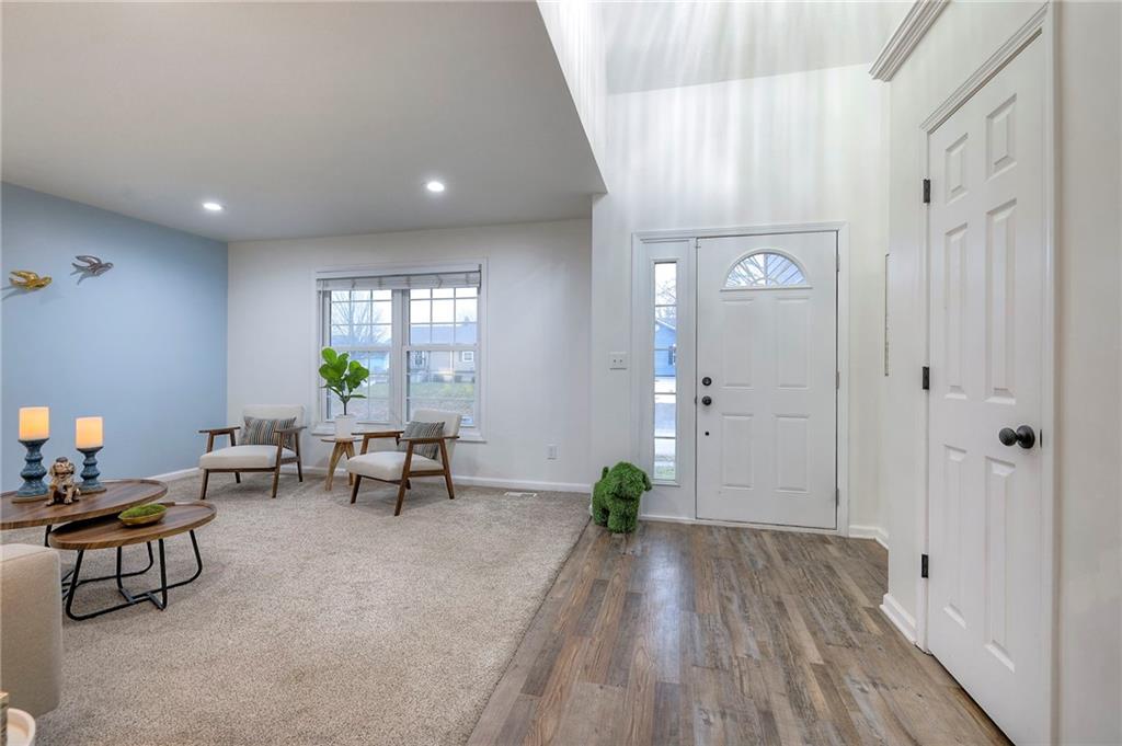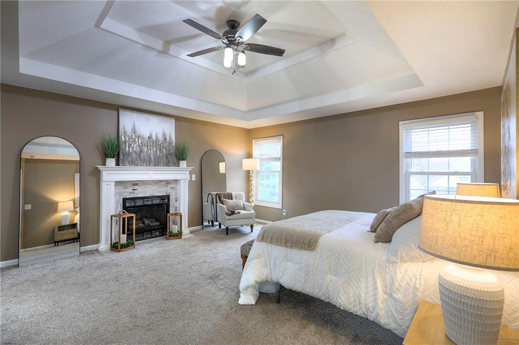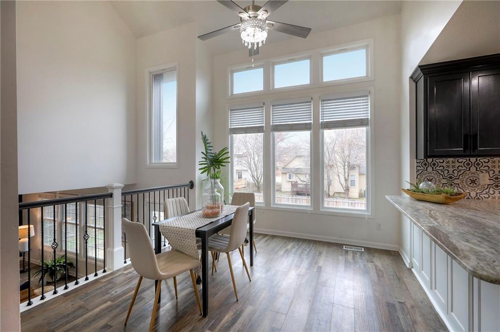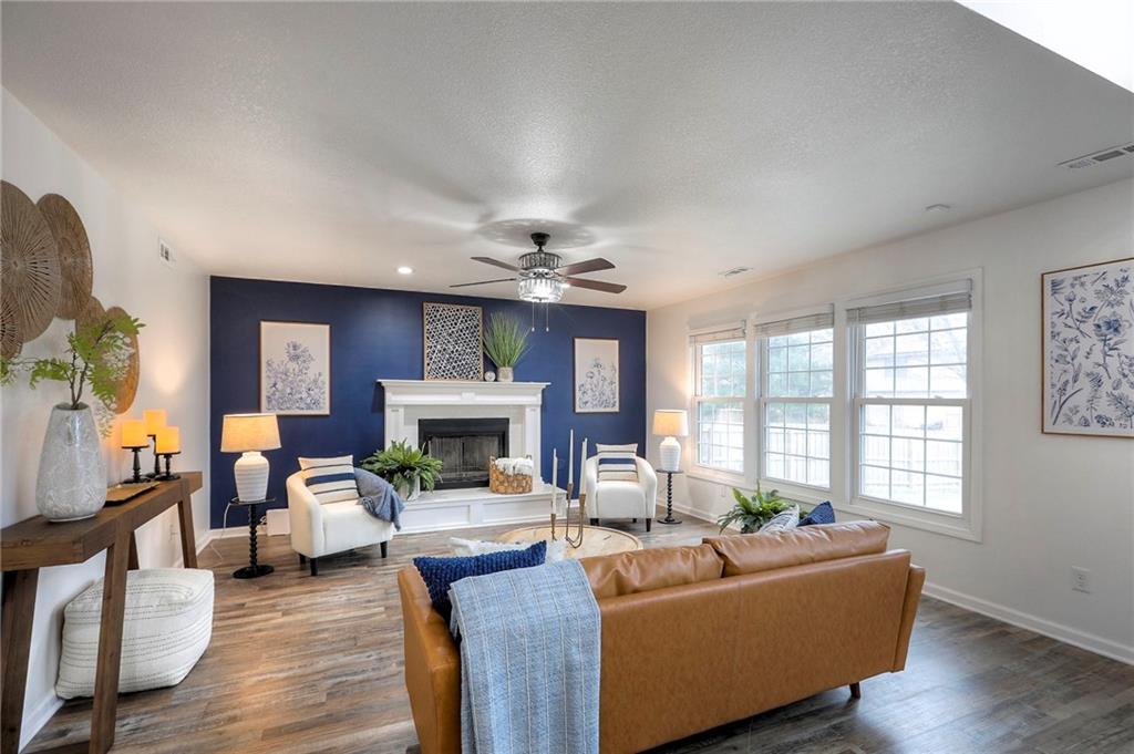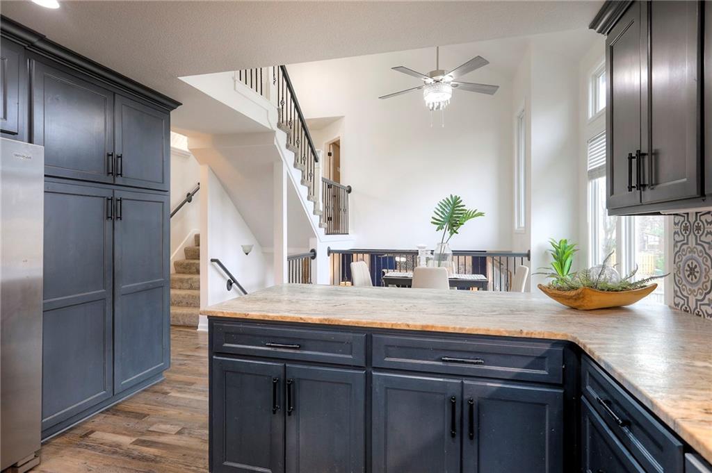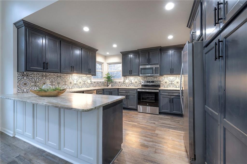 HURRY to view the best value in Lee’s Summit, a stunning, FULLY REBUILT 4-bedroom, 3-bathroom, 2,437 square foot home with modern updates and finishes in quiet Hawk’s Ridge, near the private community POOL! You will be greeted by a stylish exterior, a newer roof, and freshly poured concrete stairs. Step inside to soaring ceilings, fresh paint, and stunning lighting. Off the front entry is an inviting living room. This leads to a gorgeous, OVERSIZED KITCHEN with custom wood cabinetry and ceiling-height cabinetry, built extra-deep for maximum storage. Stainless steel appliances, backsplash, under-cabinet lighting, ample quartz countertops, and Pergo flooring are a chef’s kiss. Enjoy meals in the ample dining room with gorgeous flooring and windows. Entertain in the family room featuring large windows, a beautiful ceiling fan, a gas fireplace with a custom tile surround, and direct access to the large backyard. Up just a few stairs are 3 bedrooms, including the primary suite with double doors, a gas fireplace, an ensuite with dual sinks, a walk-in closet, a soaking tub, and a shower. Two more bedrooms with large windows and ceiling fans, same-level laundry, and a full bath complete this level. The 4th large bedroom or office, along with extra storage, is up a few more stairs. The finished lower level is an ideal additional family room for movie watching or an in-law suite with a WALKOUT and a full bathroom. The fenced yard (fence installed in 2024) features two spacious patios ideal for entertaining or barbecuing. The backyard has been freshly seeded and is the perfect space for gardening, pets, or playtime. With easy highway access, parks (including a dog park), shopping, and award-winning Lee’s Summit schools close by, you will want to VIEW this home today!