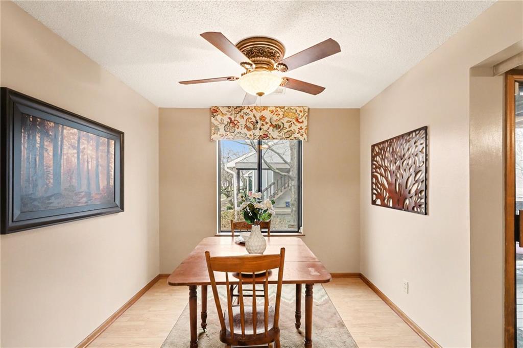Easily accessible, end-unit condo in the desirable Lakeview community of Shawnee. All on one level, the floorplan is perfectly proportioned and functional with a living room fireplace and beam ceiling accents, dining room, breakfast bar, laundry closet and a covered deck for outdoor space. Ample storage with two entryway closets, an oversized walk-in bedroom closet plus a dedicated basement storage unit in the building. Rain or shine, your vehicle is protected with a reserved carport parking space. With this low-maintenance lifestyle, there will be more of your time to enjoy amenities such as the pool, tennis courts or one of many social events hosted throughout the year. Minutes to groceries, shopping, and dining along Shawnee Mission Parkway and Hwy 435 access!