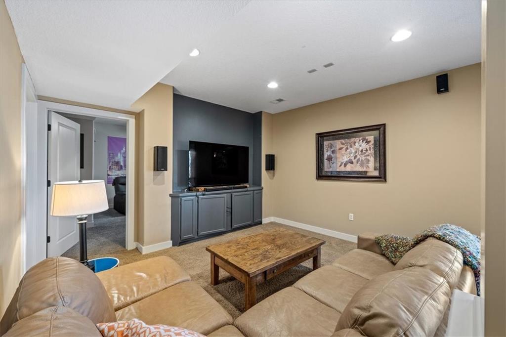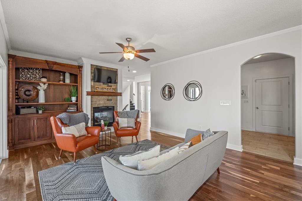 Move-in ready with a new Class-4 impact-resistant roof, finished walkout basement, and a rare fenced estate-sized lot backing to private green space—this stunning 1.5-story custom home is the total package. Step outside to pro-level landscaping: a glowing fire-pit patio, massive stamped-concrete entertaining zone, covered screened porch and new composite decking with sleek hand-built wire railing on the sun deck—providing unobstructed light and breathtaking tree views. Massive windows across the back bring the outdoors in, creating the feel of your own private rainforest retreat. Inside, every inch shows care: 2x6 exterior walls for strength and insulation, solid core doors, Andersen windows, custom cabinetry, efficient dual-zoned HVAC, Cat-5 wired network, walnut hardwoods that gleam like new, fresh exterior paint, and the Class-4 impact-resistant roof (2023) with insurance perks. The thoughtfully designed layout blends function with style. A formal dining room sets the stage for gatherings, while the heart of the home features an oversized kitchen island, gas cooktop, walk-in pantry, and abundant prep space—perfect for entertaining or casual nights. A convenient mud room keeps life organized, and a laundry chute from upstairs adds practical luxury. The main-floor primary suite offers comfort and privacy. Upstairs you’ll find a spacious loft and three generously sized bedrooms, ideal for family, guests, or home office needs. The finished basement is built for fun and functionality—complete with a wet bar, large rec/billiard room, two additional bedrooms, and a dedicated art room kids will love. Plus, the home offers impressive storage throughout. Located in the Staley attendance area with excellent highway access, this home offers space, craftsmanship, and thoughtful details throughout. A must-see!