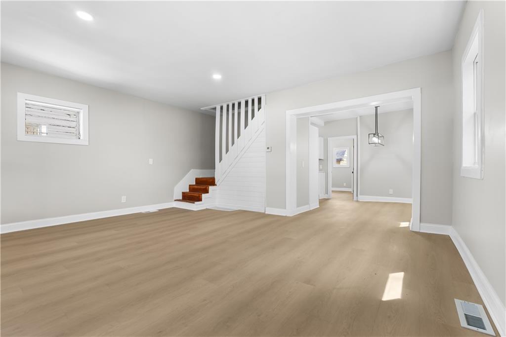 This 4-bedroom, 2-bath 1.5-story home at 3403 Indiana Ave offers extensive recent updates and functional living spaces. The interior renovation includes new kitchen finishes, updated bathrooms, new flooring, fresh interior paint, and updated fixtures throughout the home. The eat-in kitchen provides dedicated dining space and convenient layout. The main level includes a bedroom and full bathroom, while additional bedrooms are located on the upper level. An unfinished basement offers storage and utility space. Built in 1905 with approximately 1,113 sq ft of living space, this home combines historic character with modern updates. Located in Kansas City with convenient access to major roadways and city amenities.