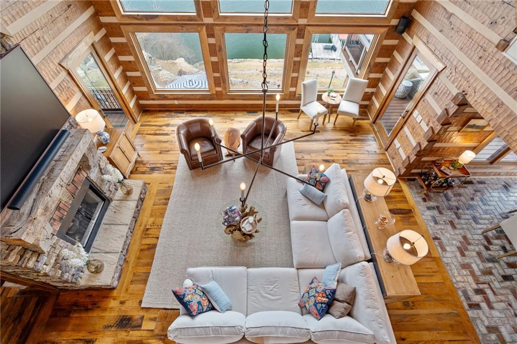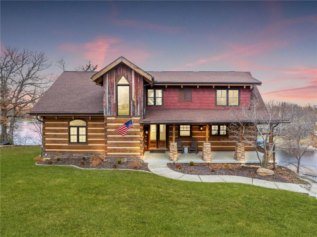 Magazine-Worthy Waterfront Living! Welcome to this stunning turn-key waterfront retreat where craftsmanship and thoughtful design shine in every detail. From the rich reclaimed oak floors to the beautifully crafted walnut cabinetry, this home blends elegance with warmth, creating a grand yet inviting atmosphere. Soft, timeless tones and numerous recent updates make this home feel both stylish and comfortable. The spacious layout offers 5 bedrooms plus 2 non-conforming rooms, providing plenty of space for family and guests. A charming bunk room adds a fun touch for gatherings, while the fully furnished movie theater room is perfect for cozy nights in. The primary suite opens directly to a peaceful screened-in porch, allowing you to wake up and step outside to the sights and sounds of the lake. Take in panoramic views of the quiet cove from the extended maintenance-free composite deck. Outdoor living continues with a cement patio, hot tub, and beautiful stone steps leading down to the dock, creating the perfect setting to enjoy both indoor and outdoor lake living. Natural rock walls enhance the landscape, while the private dock with boat lift and jet ski port are ready for your enjoyment. Located behind a buoy in a peaceful cove, this spot is ideal for fishing or simply soaking in the tranquility of lake life. You will love the abundance of fish including catfish, bass, crappie, and walleye—truly a fisherman’s paradise. Situated on the beautiful 630-acre lake at Lake Viking, residents also enjoy access to a full-service marina and an active lake community. Recent improvements include new zoned heating and cooling, new carpet, a remodeled bathroom, updated fixtures, and new lighting, adding even more value and comfort. This exceptional lake home offers the perfect blend of luxury, comfort, and natural beauty—all set within the picturesque surroundings of Lake Viking. A property like this must be experienced in person to truly appreciate.
