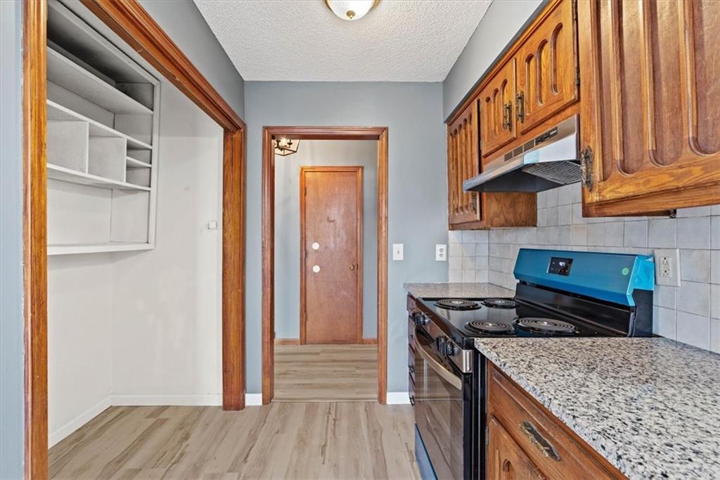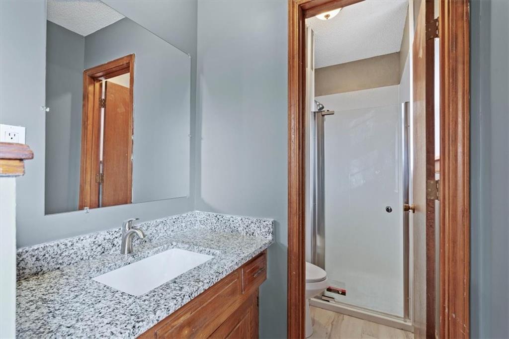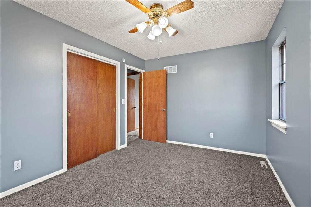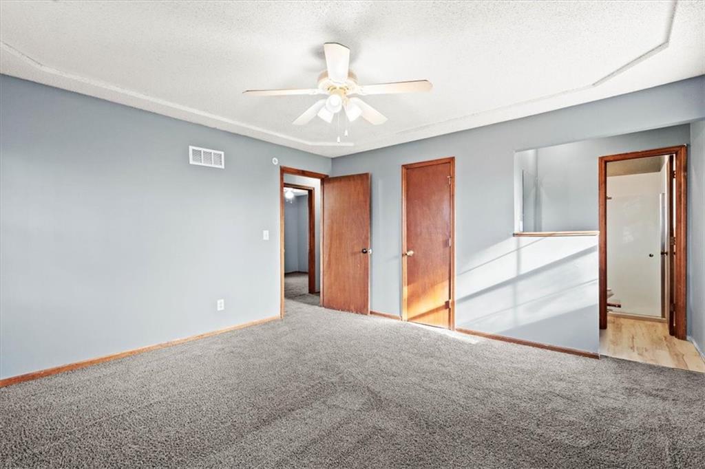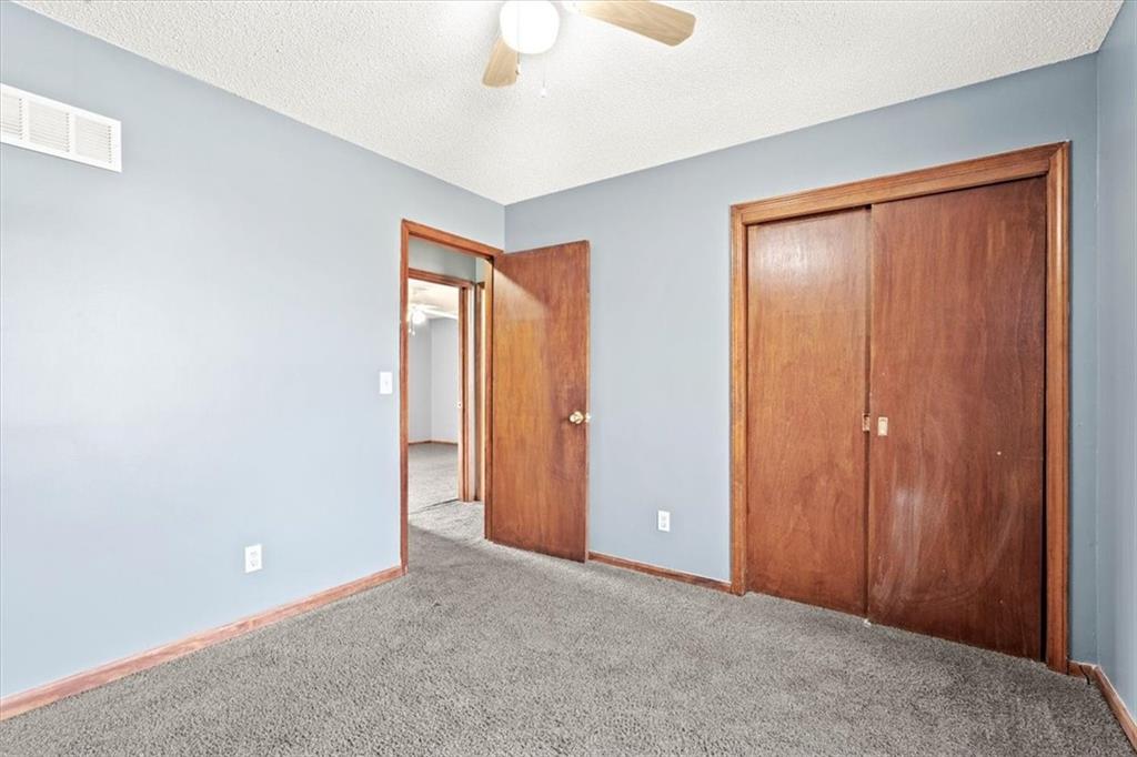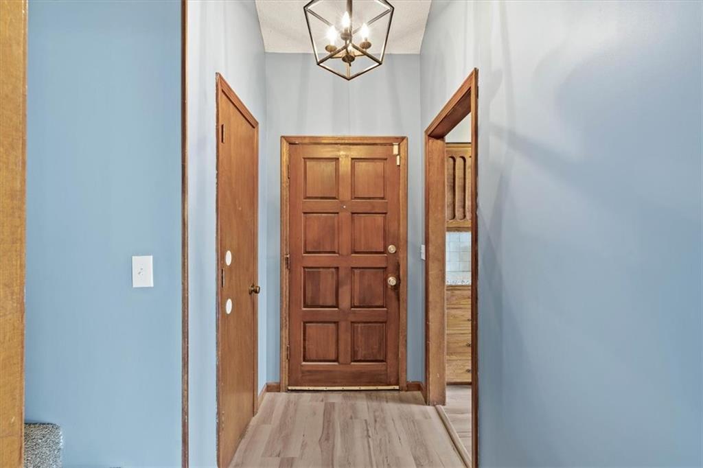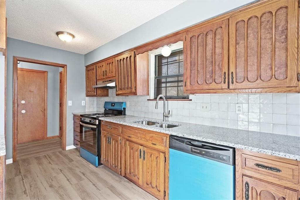 Fully updated and move-in ready, this Raytown side-split checks a lot of boxes, including one you rarely see at this price point: nearly half an acre of land. The oversized lot stretches well behind the home, giving you room to garden, play, entertain, or just breathe. Inside, the updates are everywhere. Brand new roof and gutters (2026), fresh interior and exterior paint, and new luxury vinyl plank flooring flows through the main living areas, kitchen, and entryway. The living room makes an impression with its vaulted, beamed ceiling, floor-to-ceiling brick fireplace, and a sliding glass door that opens to the back patio. The kitchen is spacious and functional, featuring solid oak cabinetry with real character, new granite countertops, updated fixtures, and plenty of room for a full dining setup. The primary suite includes a walk-in closet and a private vanity area with granite counters and its own separate shower. The finished basement is the real bonus, fully drywalled with new carpet, recessed lighting, a wood-burning stove on a brick surround, and a brand new half bath. An egress window makes it legally conforming as a fourth bedroom, and a cedar-lined closet adds serious storage. Out back, a concrete patio with a fire pit sits just off the living room, and then the yard just keeps going. Mature trees, room to expand, and privacy that's genuinely rare for this area.