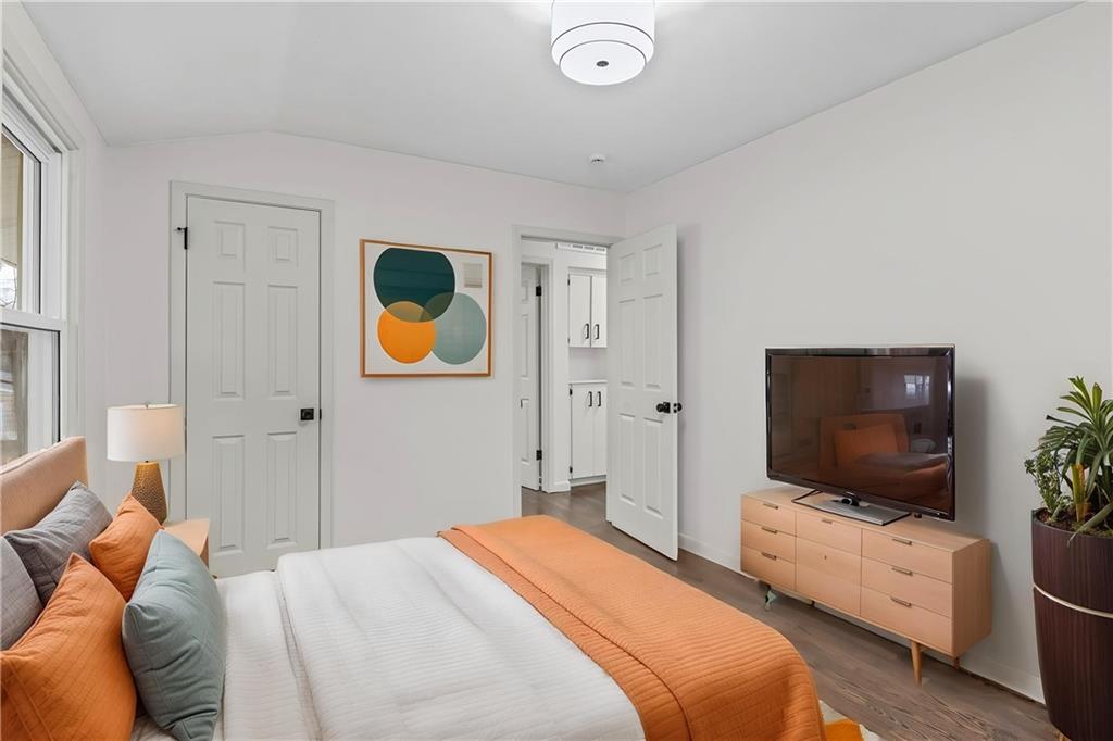 Stylish mid-century inspired home with a unique tri-level layout and beautifully updated interior.This 3 bedroom, 2 bathroom home offers vaulted ceilings, rich hardwood floors, and abundant natural light throughout the main living space. The updated kitchen includes white shaker cabinets, quartz countertops, stainless steel appliances, and modern tile backsplash with dining space nearby. Upstairs you'll find three bedrooms and two fully renovated bathrooms with stylish tile surrounds and modern vanities. The finished lower level provides a spacious second living area or family room, perfect for entertaining, a home office, or media space. Additional highlights include an attached garage with epoxy flooring, updated finishes throughout, and a large yard with mature trees. Move-in ready with style, function, and character.