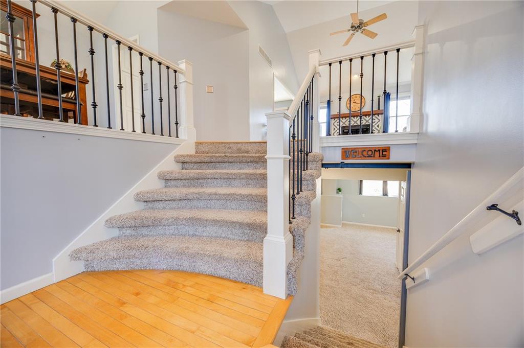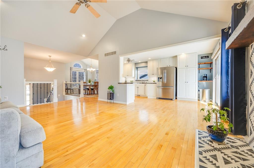Blending comfort, practicality, and a genuinely welcoming neighborhood feel, this home would win a blue ribbon at the county fair (if only houses could be judged at the fair)! Located in a community where neighbors become friends and are often there for a friendly chat or to help each other out, this home sits in a great neighborhood that is conveniently located with quick access to I-70 and easy to get to KU campus and other parts of town. During the current owner’s stewardship, a long list of updates and improvements have been completed. This is not your traditional bi-level! Upon entering the foyer, one can’t help but notice a wide and extravagant curved staircase leading to the living room featuring vaulted ceilings and a fireplace as the focal point. Enjoy the morning sunlight in the kitchen while making a cup of joe at the coffee bar or host dinner guests in the formal dining area. The primary suite is large with a very nicely appointed primary bathroom en suite. The downstairs offers a flexible living space with a full bedroom, full bathroom, and living area all on one level. Ideal for guests or a private retreat. There’s abundant storage throughout the home. 3 out of the 4 bedrooms have walk-in closets. There’s a dedicated storage room near the garage, generous cabinetry throughout the home, even more storage space underneath the stairs, and a storage shed in the backyard! A deep 3-car garage has room for vehicles, hobbies, tools, or whatever else you’re into. The backyard is stunning! A comfortable deck looks over the patio with built-in firepit and a yard that invites relaxation, gatherings, and time outside under mature trees, especially the maples, which bring color and character in the fall. This is a sharp, clean house that’s ready for its next owners to call it home. Schedule a showing today!