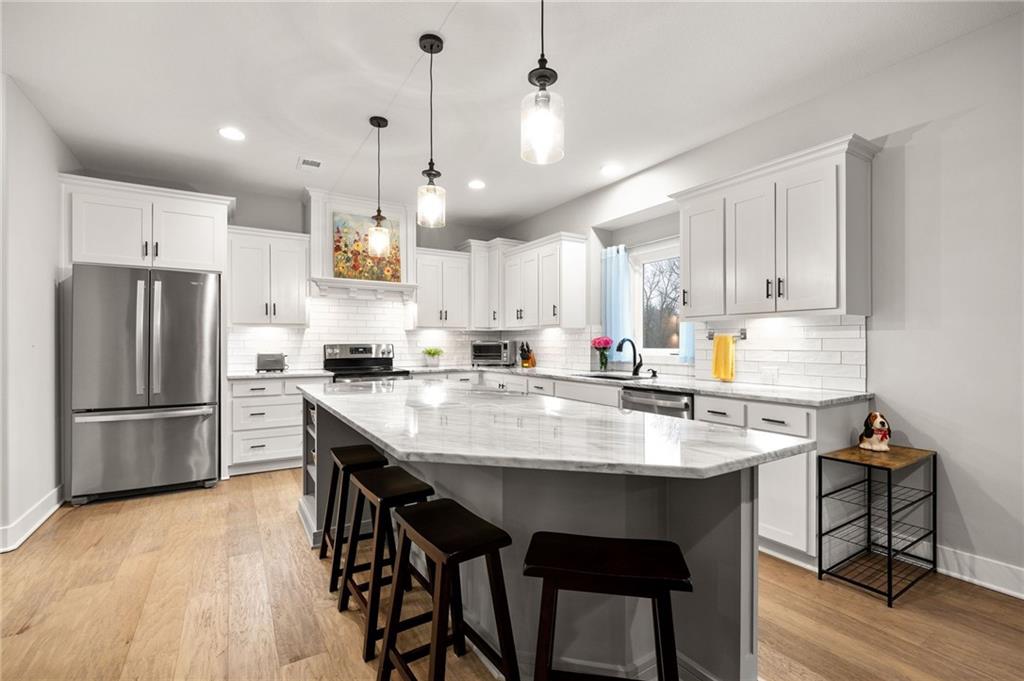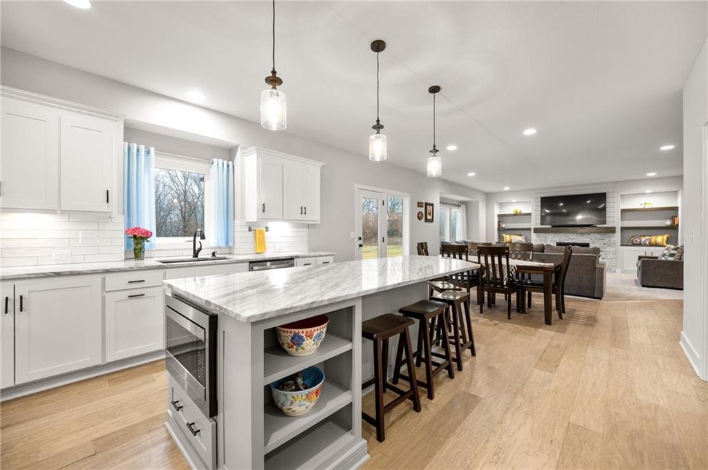 Welcome to this stunning 2-story home in Kansas City, perfectly situated on a quiet cul-de-sac backing to serene mature trees. This 4-bedroom, 3.5-bathroom residence has been meticulously taken care of, combining professional craftsmanship with a warm, inviting atmosphere within the highly sought-after Staley High School boundaries. The open floor plan on the main level is designed for effortless transition, featuring an updated kitchen with a massive island that serves as the natural gathering spot. High-end hardwood floors and a spacious walk-in pantry complement the light-filled living area. A unique feature of this property is the 3-car garage, which includes a bonus room at the rear—offering versatile space for a workshop, hobby area, or additional storage. Step outside to the covered patio to enjoy peaceful views of the greenspace and manicured lawn, maintained effortlessly by the built-in sprinkler system. The expansive basement is a blank canvas for future equity, already stubbed for a full bath and featuring an egress window for a potential fifth bedroom or additional living suite. Located just minutes from local shopping and dining, this home offers the perfect balance of suburban tranquility and modern convenience.