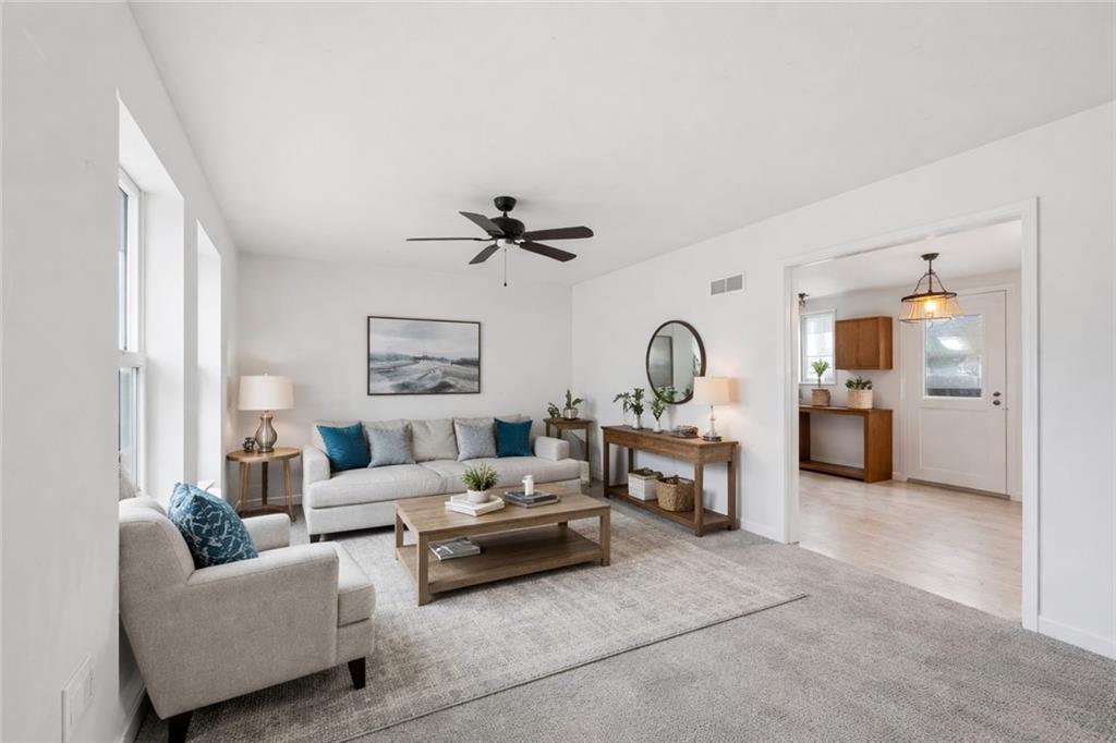 Welcome home to this inviting 3-bedroom, 2-bath residence offering comfortable living and great outdoor space. Step inside to a bright living area filled with natural light from large front windows, creating a warm and welcoming atmosphere. The kitchen features stainless steel appliances, abundant cabinetry, and a convenient dining area perfect for everyday meals or entertaining guests. The spacious primary suite includes its own private bath, while the additional bedrooms provide flexibility for family, guests, or a home office. Enjoy relaxing or hosting gatherings on the large elevated deck overlooking the fenced backyard. The property also includes a 2-car garage and a generous driveway for additional parking. A new water heater adds extra peace of mind, making this home a fantastic opportunity for its next owner.