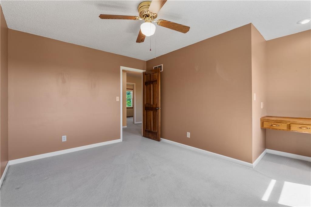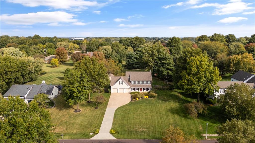 Tucked away in the desirable Harmony South neighborhood, this classic Colonial-style home offers a rare blend of space, comfort, and a peaceful one-acre setting. The main floor features a traditional layout with a formal dining room and a dedicated home office with built-ins just off the entry. The living room is warm and inviting with a bay window, brick fireplace, and custom built-ins, creating a perfect place to gather. The kitchen is designed with functionality in mind, offering abundant cabinetry, generous counter space, and granite countertops for everyday living and entertaining. Upstairs, the primary suite provides a private retreat with tray ceilings, a separate sitting area, and an ensuite bath complete with double vanities, vaulted ceilings, a soaking tub, separate shower, and skylight. Additional bedrooms are comfortably sized and offer flexibility for family or guests. The finished basement expands the living space and can easily serve as a recreation room, workout area, hobby space, or media room. A standout feature of the home is the bright all-weather porch, surrounded by windows and filled with natural light, making it the perfect spot to relax, watch the seasons change, or enjoy game days. The backyard is truly special, featuring an oversized saltwater pool, mature landscaping, fruit trees, and grapevines that produce annually. A patio extends the outdoor living space, and a convenient shed near the pool provides storage for equipment and supplies. Set in a quiet, established community known for its friendly atmosphere, this home also offers exceptional access to everything South Overland Park has to offer, including parks, shopping, healthcare, highways, and the Arboretum, along with highly regarded schools nearby. This property combines everyday comfort with a private, retreat-like setting in a location that makes daily life easy and enjoyable.