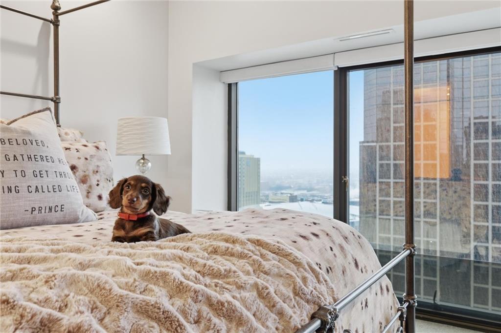 Perched on the 17th floor, this stunning 2-bedroom, 2.5-bath high-rise condo offers breathtaking views of the Kansas City skyline and the ultimate in walkable downtown living. The open living space features soaring ceilings, expansive windows, and incredible natural light, creating a dramatic setting for both everyday living and entertaining. The kitchen offers stainless steel appliances, a gas cooktop, and generous counter space, flowing seamlessly into the spacious living area where floor-to-ceiling windows frame the downtown skyline. The primary suite provides a peaceful retreat with beautiful city views and ample space, while the second bedroom and additional bath offer flexibility for guests or a home office. Residents enjoy exceptional building amenities, including 24-hour concierge service, a fitness center, a rooftop pool, a party room, secure building access, storage, and two garage parking spaces. A recent HVAC system upgrade (less than two years old) adds additional peace of mind. Located in the heart of downtown Kansas City with streetcar access just steps away, this home places restaurants, entertainment, and vibrant city life right outside your door!
