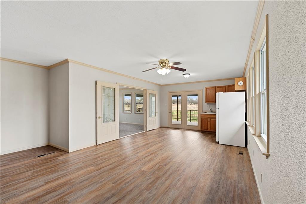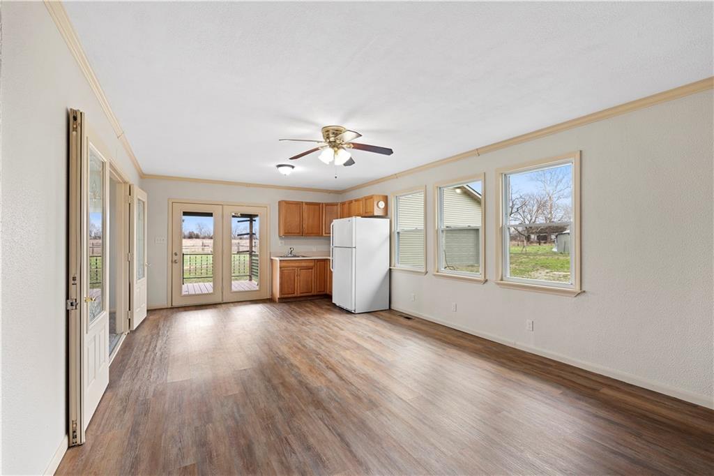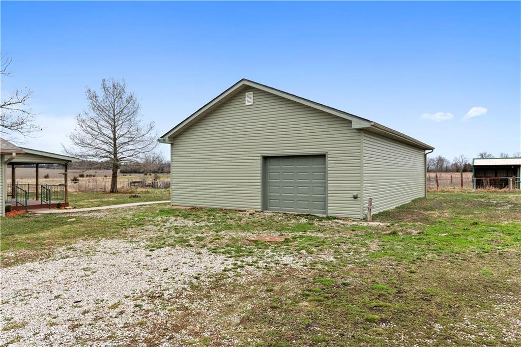Beautifully remodeled country home on 15± acres offering the perfect blend of modern updates and rural living. This 3 bedroom, 2 bath home features numerous upgrades including new flooring, fresh paint, new roof, vinyl siding, and stainless appliances. The kitchen stands out with butcher block countertops and a stylish tile backsplash. The home offers both a formal living room and a spacious family room, providing flexible living and entertaining space. Refurbished wood floors add character, while the large primary suite with private on-suite bath offers comfort and privacy. Custom tile work in the laundry area adds another nice touch. Outdoor amenities make this property especially appealing with a covered porch, deck, and approximately 15.5 acres of cattle-tight fenced pasture, ideal for livestock, hobby farming, or simply enjoying the space. A 30x40 shop with tall ceilings and matching vinyl siding provides excellent space for projects, equipment, or storage. Additional features include a carport with storage closet, along with a chicken shed and traditional root cellar that offer great potential for restoration and use. If you're looking for updated country living with acreage, shop space, and room to grow, this property is definitely worth a look