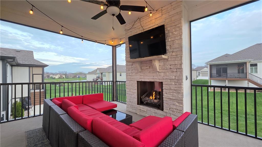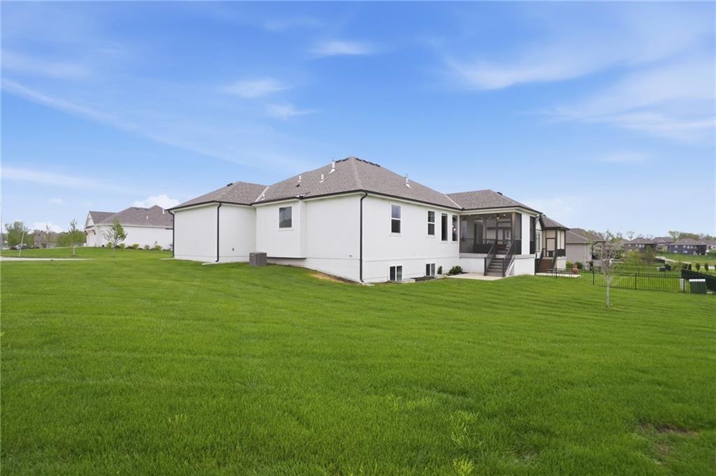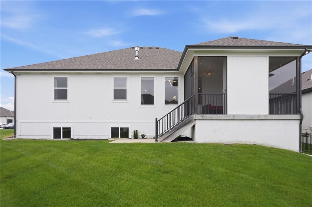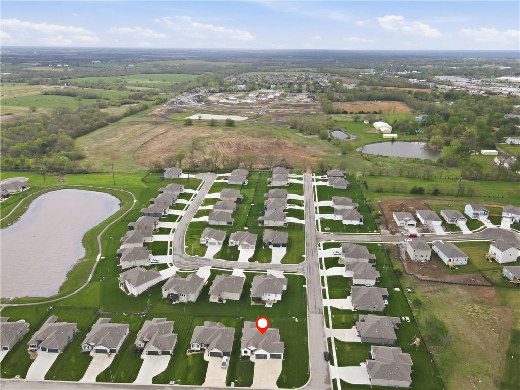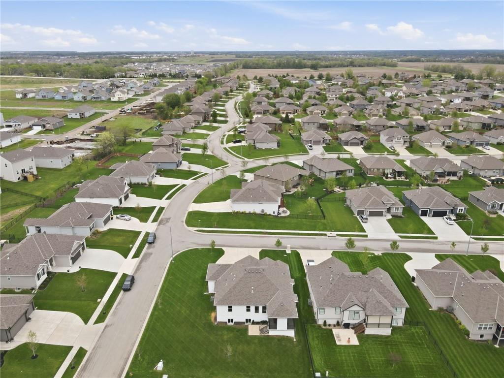 Welcome to your next neighborhood! Brookwood Farms is a vibrant, warm, welcoming, and social community with a pool, playground, fishing pond, and walking trails. Welcome to your next home! A rare opportunity to own a home featuring a 4 car garage — perfect for the car collector, hobbyist, boat owner (Hillsdale Lake is just 16 minutes!), or anyone needing expansive garage space. Whether you’re storing classic cars, creating a workshop, or keeping recreational vehicles and equipment protected, this home's garage offers incredible flexibility and room to spare. Inside this reverse 1.5 story home, find a spacious open floor plan designed for comfortable living and entertaining along with 4 bedrooms and 3 full bathrooms; providing plenty of room for you, your family and/or guests. Every detail considered! This home stands out from others with it's first impression curb appeal of the white & black modern farm-house style, to 4 frosted glass panel garage doors, to interior upgraded features that you will love - dramatic barrel-vault entry hall, arched openings, stainless steel double ovens and gas range, farmhouse style sink in large kitchen island, granite counter tops, shiplap feature wall framing the living room fireplace, boxed ceiling in primary bedroom, free-standing soaker tub in ensuite, walk-in shower, modern light fixtures, and soft backlighting throughout. Step outside to take-in sunrise over the neighborhood pond or the sunset as the day winds down, all from the screened-in covered deck with stone fireplace which creates a cozy outdoor living space you can use year-round. A rare combination of functional living space and an exceptional garage/workshop setup that’s increasingly hard to find. This home truly has it all in the fastest growing residential community of Spring Hill, Kansas!