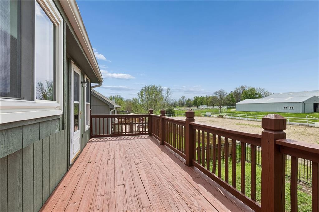 Rare true 5-bedroom home in the highly sought Park Hill School District! This 1.5-story home offers a blend of convenience and peaceful, country-like surroundings. Located near Zona Rosa shopping, scenic trails, and easy highway access, backs to equestrian center & open land where you can enjoy watching horses from your backyard. Thoughtfully designed with ADA accessibility in mind, the main level features raised outlets, a roll-in shower, and main floor laundry. The spacious kitchen includes a double oven, roll-out pantry shelves, and large open and inviting living area. Deck off of dining area offers views of equestrian activities and peaceful country living. Generous sized bedrooms on second level with multiple walk-in closets, and bathroom with a deep soaking tub. The finished walk-out basement offers a 5th bedroom, full bathroom, and living area with floor-to-ceiling windows. Plus, over 400 square feet of unfinished space provides endless possibilities for a workshop, gym, or additional storage. Recent updates include a NEW HVAC, NEW CARPET, FRESHLY PAINTED INTERIOR, newer roof, and new thermal windows. Google Fiber is available!