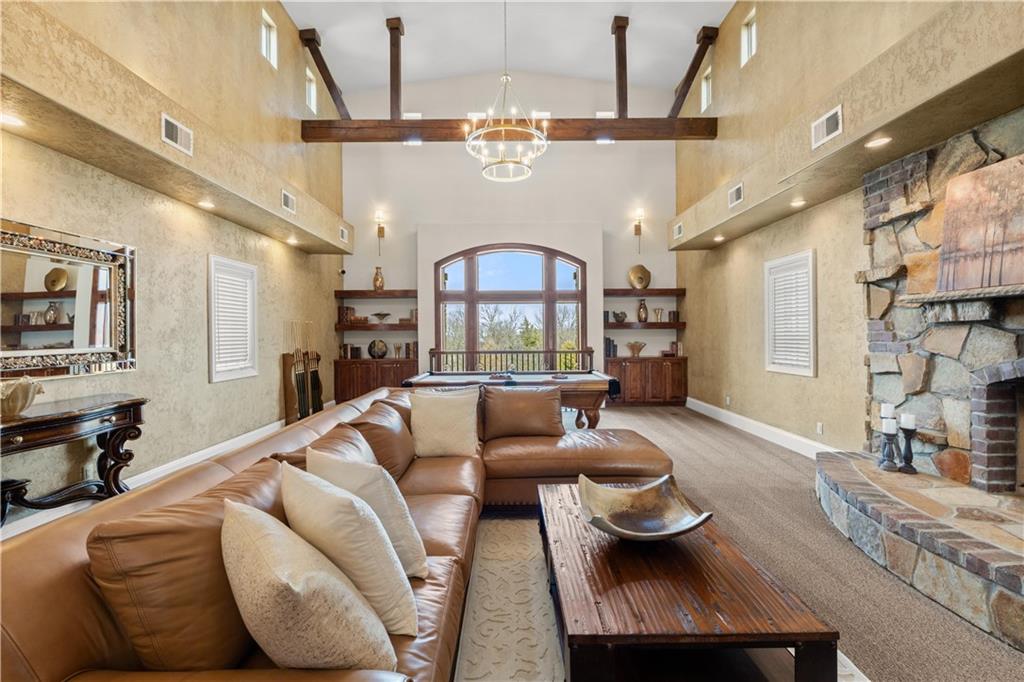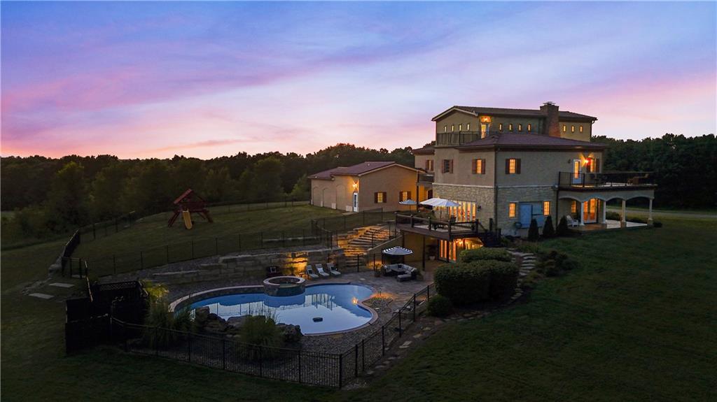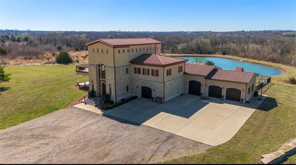 Now is the time to make this amazing opportunity a reality! This 8000+ sqft Mediterranean Masterpiece sits on 26+ acres of secluded land. It is located in Douglas County, Kansas. The pictures pale in comparison to what this luxurious home looks like up close and in person! Priced well under the professionally appraised value, this home is now destined to sell fast. Gated entry to a long winding drive leads you to this beautiful private country estate. It is outside the city yet still close to all the suburban amenities. Truly the best of both worlds. Elegance is a word that best describes the interior of this home with its expansive rooms, gourmet kitchen, multiple fireplaces and huge living areas on every level of this one of a kind, private estate. It also boasts astonishing outdoor living from the decks to a large patio surrounding an amazing custom pool & hot tub which overlooks your very own private lake, complete with its own island. Wildlife abounds on this property, as you can watch the deer, turkey, fox, any many other species cross the secluded 26+ acre estate. There are wide-open meadows that could be fenced for pasture and other areas of surrounding land that can be mowed to enlarge those open meadows. This already outstanding property could be developed into an incredible Equine Estate. This secluded, sophisticated homestead in Edgerton Kansas will satisfy even the hardest to please, so make plans today to tour this one of a kind estate property. This property is within very close proximity of several surrounding cities in Kansas such as Overland Park, Lenexa, Olathe and Lawrence, home of the Jayhawks. The prestigious University in Lawrence, KS is within 25 minutes of this estate property.